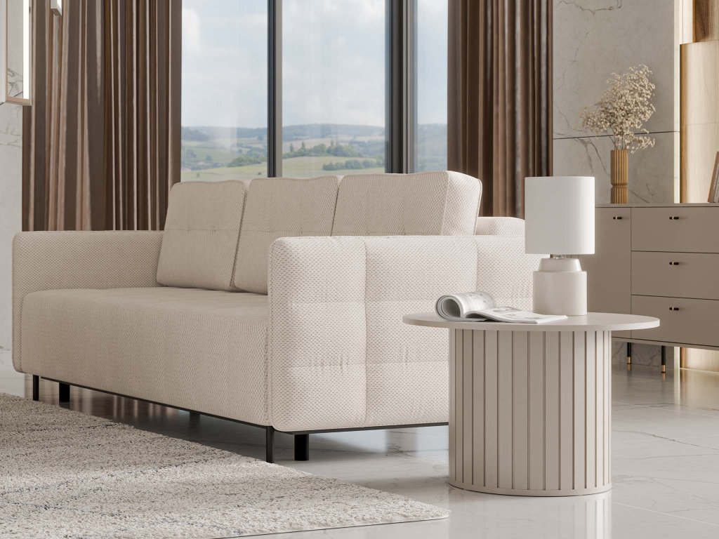 Kolekcia nábytku Zante je dokonalým riešením pre moderný domov, ktorá zahŕňa všetko potrebné do obývačky, spálne alebo jedálne. Táto elegantná kolekcia sa skladá z troch komôd, TV stolíka, dvoch konferenčných stolíkov v odlišných rozmeroch a jedálenského stola, čím poskytuje harmonický a funkčný priestor pre každodenný život. Majú v sebe zabudované pánty, vďaka ktorým dosiahnete tiché zatváranie dvierok. Rovnako disponuje aj kovovými rukoväťami a robustnými nožičkami, ktoré sú tiež z kovového materiálu. Zaoblené strany vyrobené z MDF pridávajú na elegancii a bezpečnosti, zatiaľ čo zadná strana nábytku z laminovanej dosky zaisťuje jednoduchú údržbu.