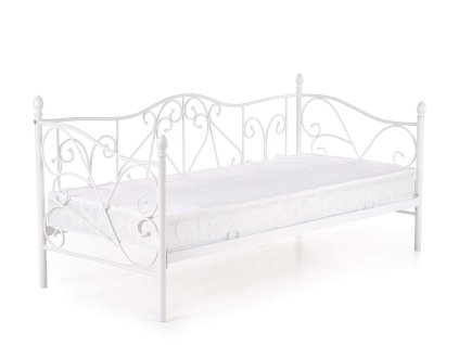 Kovová posteľ jednolôžková s minimalistickým alebo zdobeným čelom
