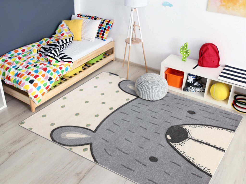 Súčasťou každej izby by mať byť koberec, ktorý je jednoduchým a praktickým doplnkom do spálne, obývačky či kuchyne. Predstavujeme vám detský koberec s motívom Macka ktorý oživí detskú izbu a zároveň poskytuje aj väčšie bezpečie pre vaše deti. Hustota štetiny je 2500g/m2 typu Frieze , ktorý má výšku vlasu 13 mm. Koberec je vyrobený z polypropylénového vlákna, ktoré je pružné a mäkké vďaka svojmu tepelnému spracovaniu. Je odolnejšie voči oderu a nedeformuje sa. Čo určite oceníte je jednoduchá a praktická údržba a stredne dlhý vlas. Máme k dispozícií viacero rozmerov záleží už len na vás, ktorý vám bude vyhovovať.