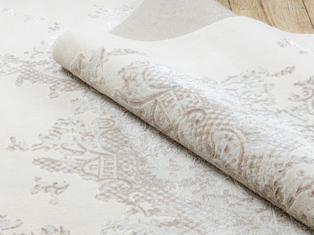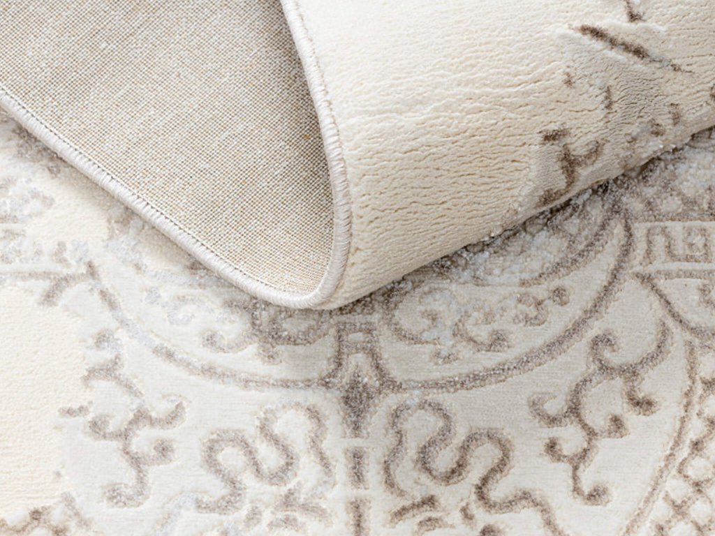Koberec Zahra predstavuje spojenie elegancie a praktickosti, ktoré prinesie do vašich interiérov nový rozmer. Tento kus spojuje vysokokvalitné materiály s dizajnom, ktorý osloví rôzne vkusy. Kombinácia polypropylénu a polyesteru v základe zabezpečuje nielen dlhú životnosť, ale aj jemnosť a príjemný dotyk. Výrazný ornamentálny vintage vzor s dvoma dĺžkami vlasu poskytuje kobercu hlboký charakter a dodáva izbe štýlový nádych. Jeho odtiene krémovej s jemnými hnedými prvkami mu dodávajú luxusný vzhľad, čo ho robí ideálnym pre moderné aj klasické interiéry. Okrem toho je vhodný na použitie s podlahovým kúrením, čo zabezpečuje teplo a pohodlie vo vašom dome. Bez ohľadu na to, či hľadáte dokonalý koberec do spálne, obývačky alebo chodby, koberec Zahra je tu, aby uspokojil vaše požiadavky na štýl, pohodlie a odolnosť.