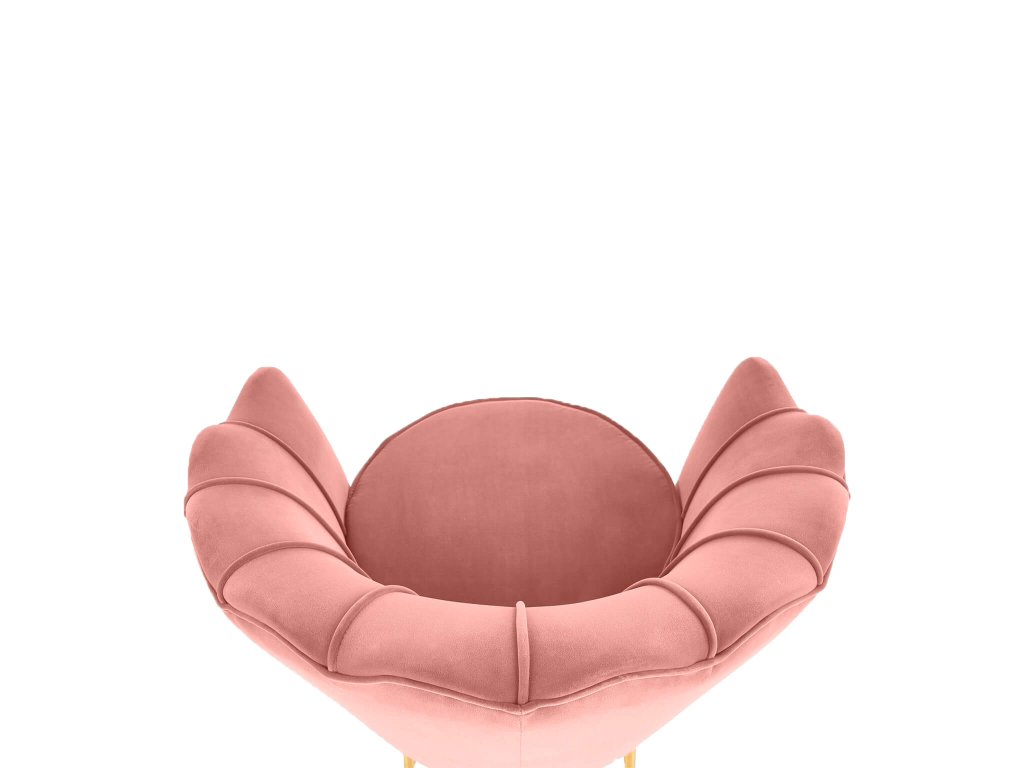 Moderné kreslo Amorinito s originálnym dizajnom pripomínajúcim morskú lastúru bude skvelou dekoráciou vášho interiéru a navyše vám ponúkne pohodlné miesto na odpočinok. Je čalúnené kvalitným Velúrom v svetloružovom prevedení, ktorý je hebký a príjemný na dotyk. Stabilné a odolné kreslo je vyrobené z najkvalitnejších materiálov čo zaručuje jeho používanie na dlhé roky. Mimoriadny vzhľad dodávajú nožičky z pochromovanej ocele v zlatom odtieni. Doprajte si pohodlné mäkké sedenie vďaka vankúšu, ktorý je umiestnený na sedadle. Charakteristickým znakom kresla Amorinito je vkusne prešívané operadlo s netradičným tvarom, ktorý prechádza až na boky kresla a ponúka týmto opierky pre ruky.