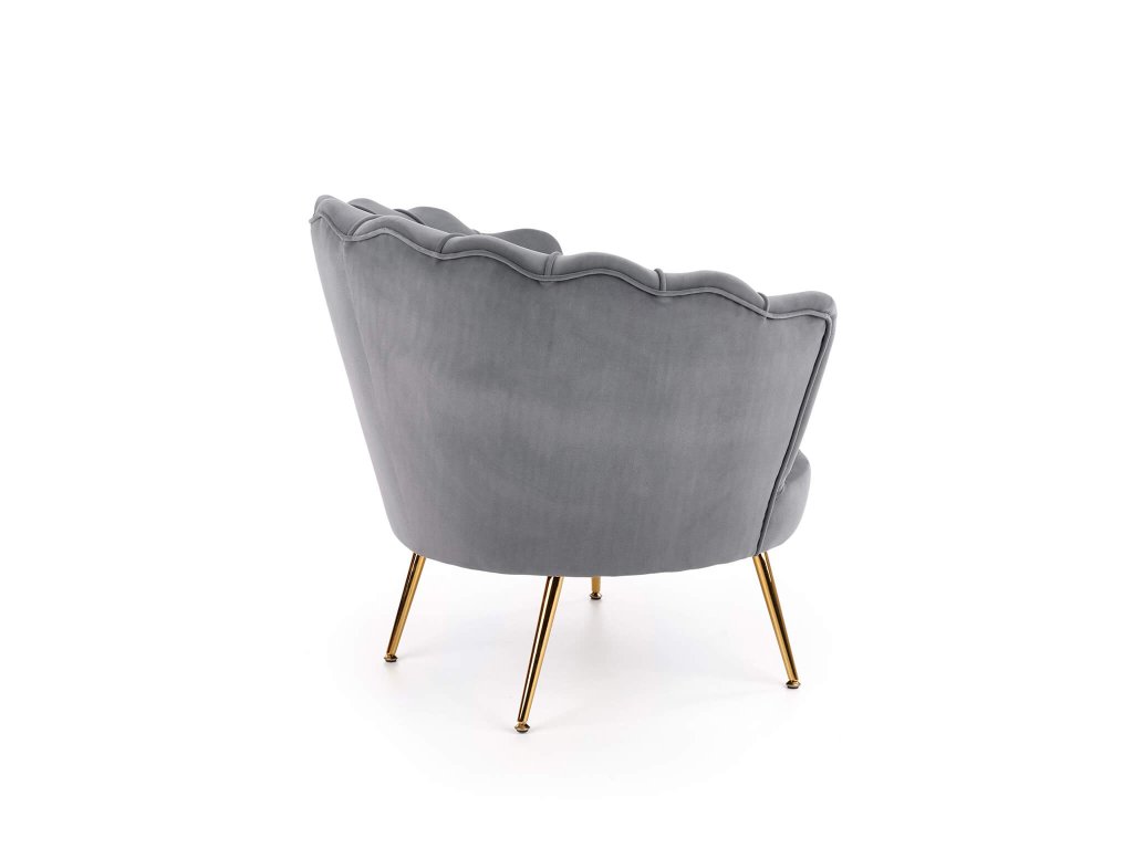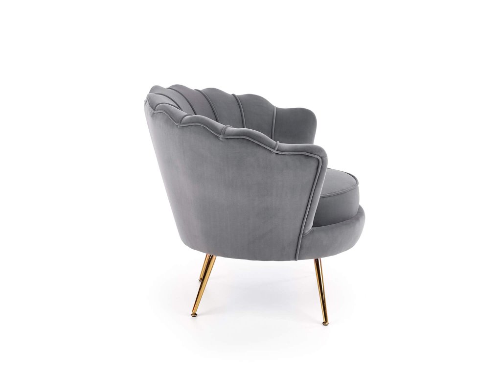 Precízne prepracované kreslo Amorinito s originálnym dizajnom bude dokonalý doplnok do každého interiéru. Poskytne miesto na kvalitný odpočinok po namáhavom dni. Čalúnené je elegantným kvalitným Velúrom v sivom prevedení, ktorý je hebký a príjemný na dotyk. Stabilné a odolné kreslo je vyrobené z najkvalitnejších materiálov čo zaručuje jeho používanie na dlhé roky. Mimoriadny vzhľad dodávajú nožičky z pochromovanej ocele v zlatom odtieni. Charakteristickým znakom kresla Amorinito je vkusne prešívané operadlo s netradičným tvarom pripomínajúcim morskú lastúru, ktoré prechádza až na boky kresla a ponúka týmto opierky pre ruky. Usaďte sa do pohodlného kresla s mäkkým vankúšom umiestneným na sedadle. Či si ho dáte do spálne k toaletnému stolíku, do obývačky pre hostí, alebo do pracovne všade sa bude dokonale vynímať.