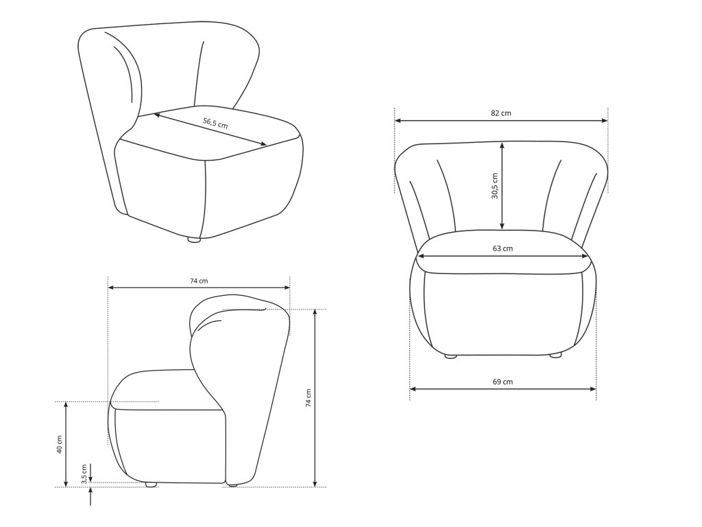 - Rozmery (šxvxh): 82 x 74 x 74 cm
