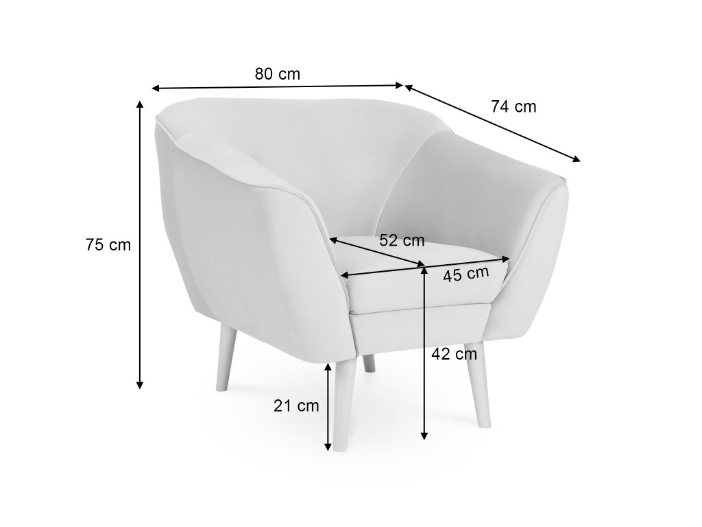 - Materiál: čalúnenie látkou MAGIC VELVET 2293 / drevené nožičky / pena
