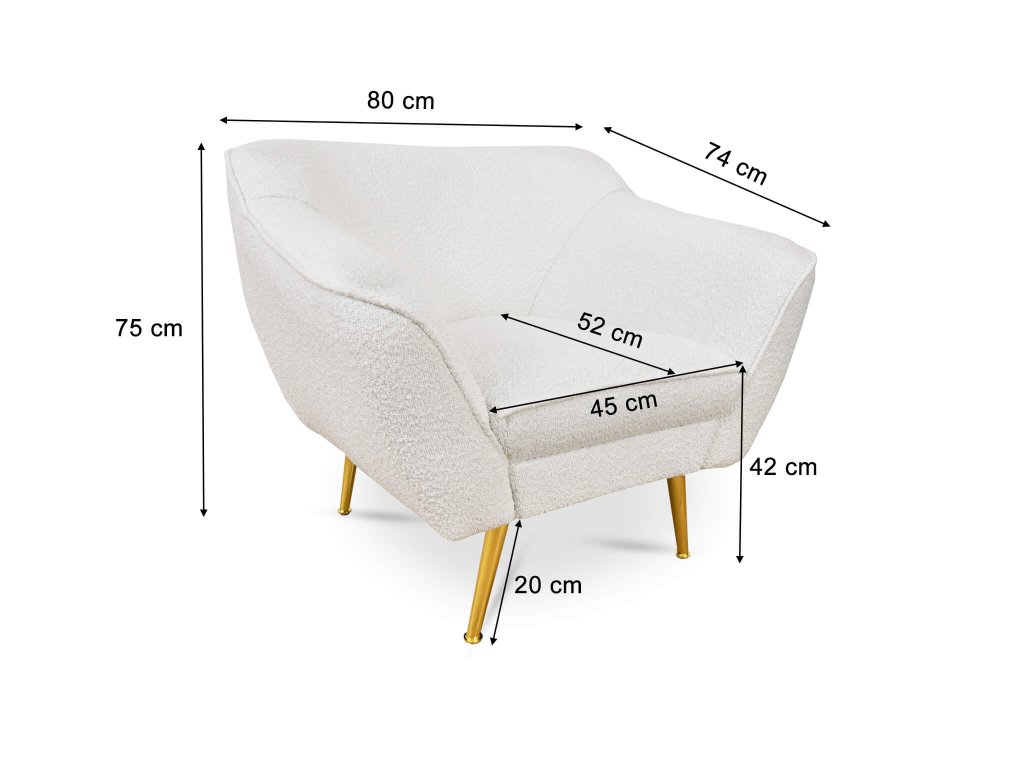 - Materiál: čalúnenie boucle látkou / kovové nožičky