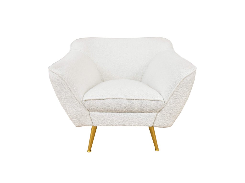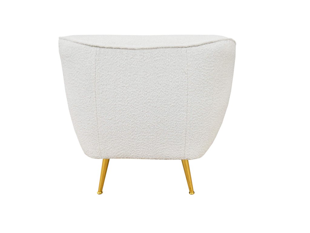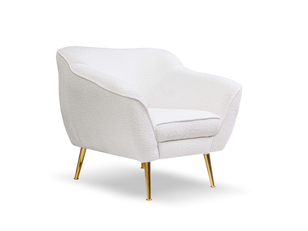 Luxusné kreslo Bowy si vás okamžite získa. Chutná látka boucle v kombinácii so zlatými kovovými nožičkami pôsobí nesmierne útulne, s nádychom prepychu. Pohodlne sa usaďte a vychutnávajte si nerušené chvíle oddychu. Jedinečný štýl kreslu dotvára boucle látka, ktorá je tvorená malými mäkkými guličkami a ktorá pripomína vlnu baránka. Na profilované operadlo a opierky je použitá pena o tvrdosti T25, na sedadlo T30. Kvalitná pena T30 zaručí bezproblémové, dlhé a hlavne pohodlné používanie. Toto chutné kreslo sa môže stať neoddeliteľnou súčasťou vašej obývačky, spálne či pracovne. Nestratí sa ani na chodbe, v predsieni alebo na inom mieste v dome či v administratívnej budove, kde si naň môže sadnúť návšteva a počkať napríklad na dohodnuté stretnutie.