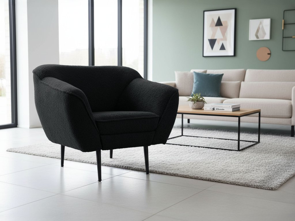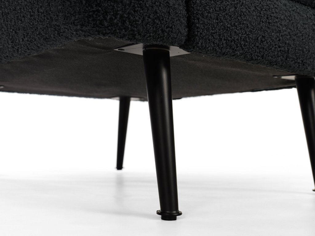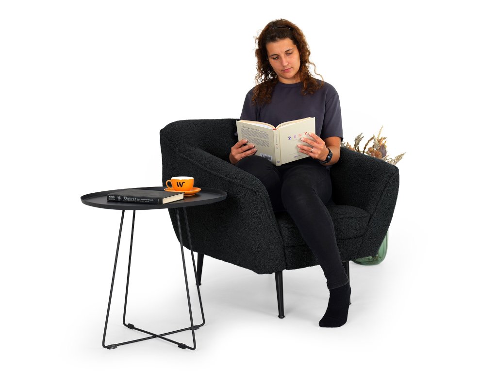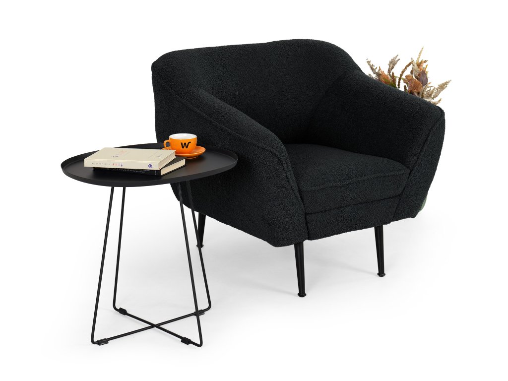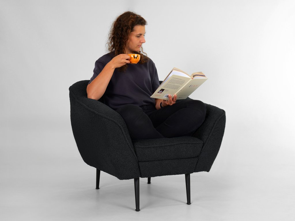 Kreslo do obývačky Bowy vyniká svojím nadčasovým škandinávskym dizajnom, ktorý dokonale ladí s moderným interiérom. Stabilné čierne kovové nohy dodávajú nábytku ľahkosť a eleganciu, zatiaľ čo jeho mäkké čalúnenie pozýva k oddychu. Látka Now or Never v štruktúre bouclé je zmyselne hebká a pripomína kučeravú jahňaciu vlnu – pôsobí hrejivo, prirodzene a útulne. Vďaka vlnitým pružinám a penám vysokej hustoty poskytuje kreslo výnimočné pohodlie, ktoré oceníte pri každom oddychu.