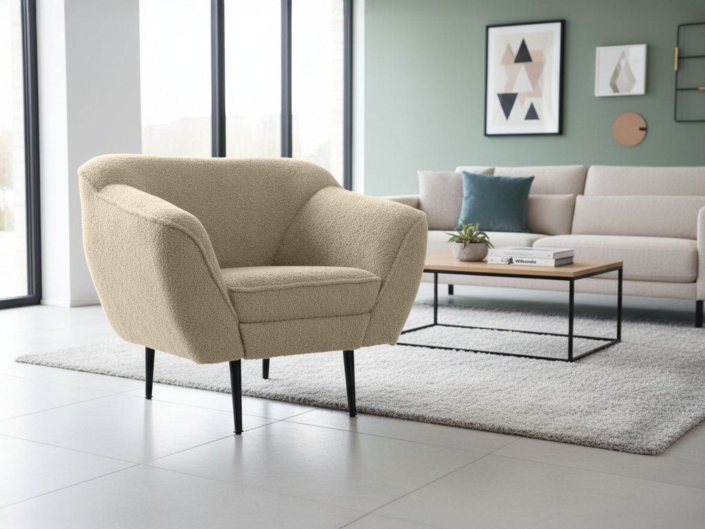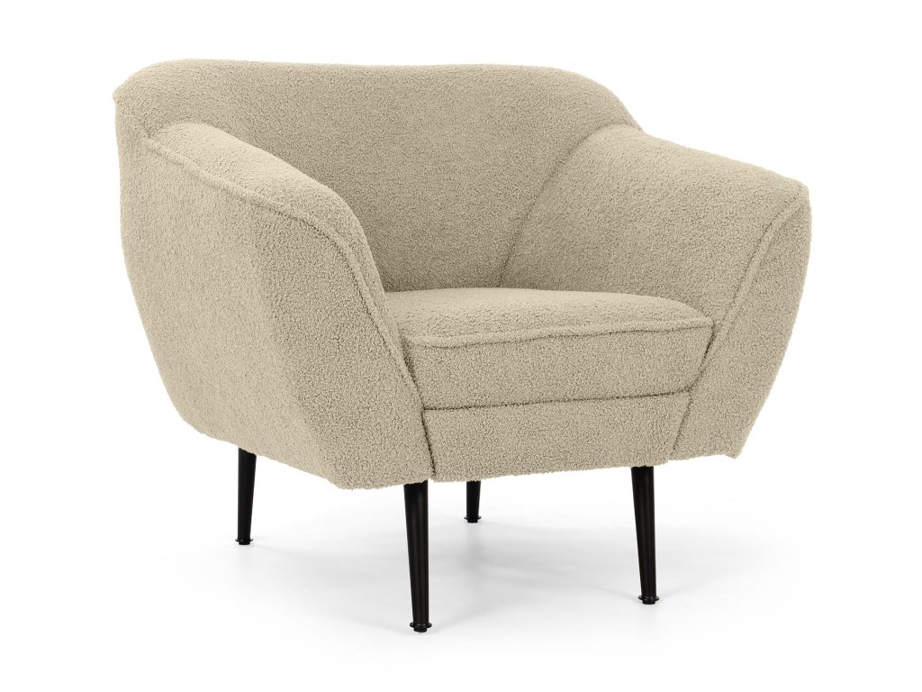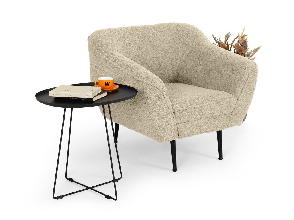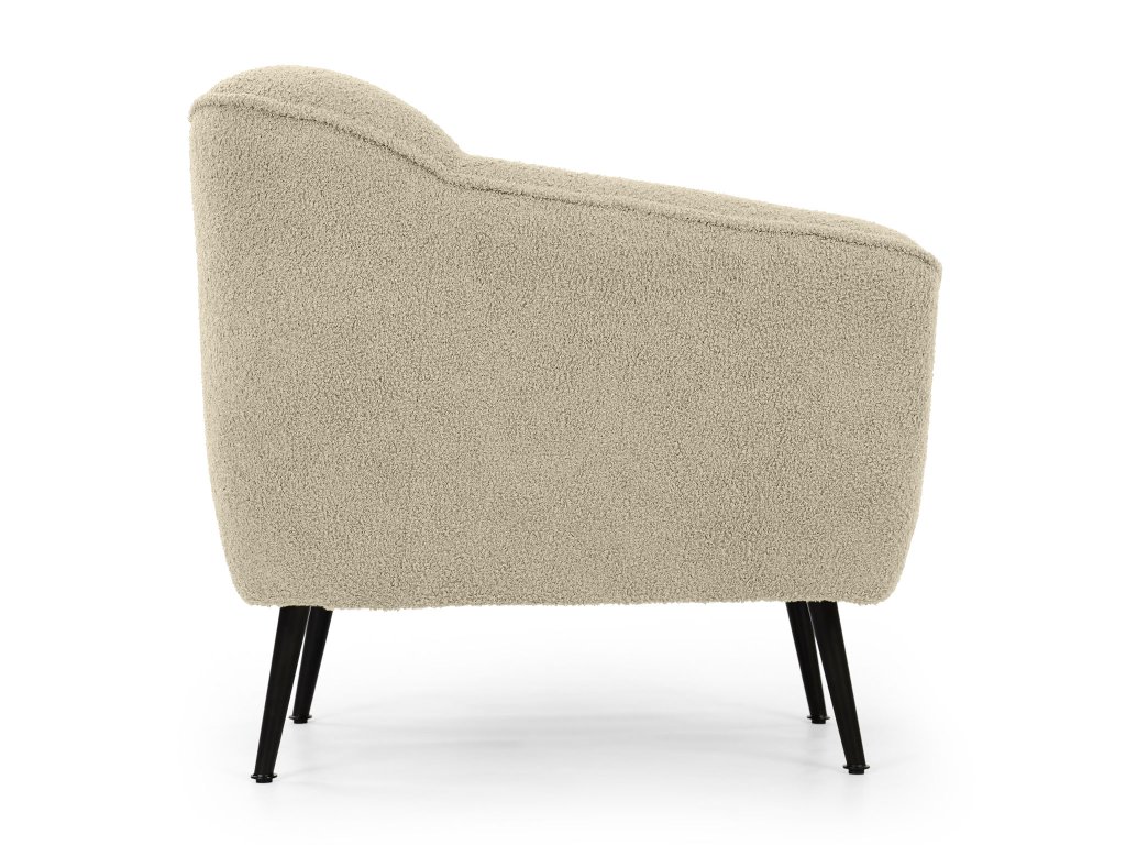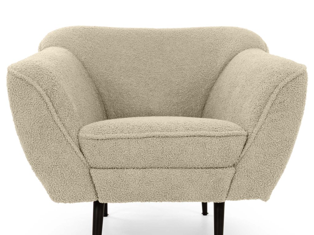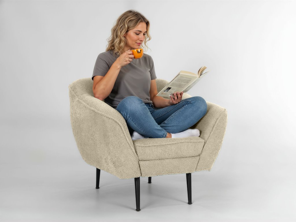 Svetlé, nadčasové a neuveriteľne pohodlné – také je čalúnené kreslo Bowy v krémovom prevedení. Jeho jemný odtieň rozjasní každý interiér a vytvorí pocit priestoru, pokoja a čistoty. Oblý tvar pôsobí mäkko a elegantne, zatiaľ čo čierne kovové nohy dodávajú nábytku moderný kontrast. Látka Now or Never v štruktúre bouclé má charakteristický kučeravý povrch, ktorý pripomína jahňaciu vlnu – je hrejivá, hebká a príjemná na dotyk. V kombinácii s vlnitými pružinami a penami vysokej hustoty ponúka kreslo výnimočné pohodlie a kvalitnú oporu tela počas každodenného oddychu.