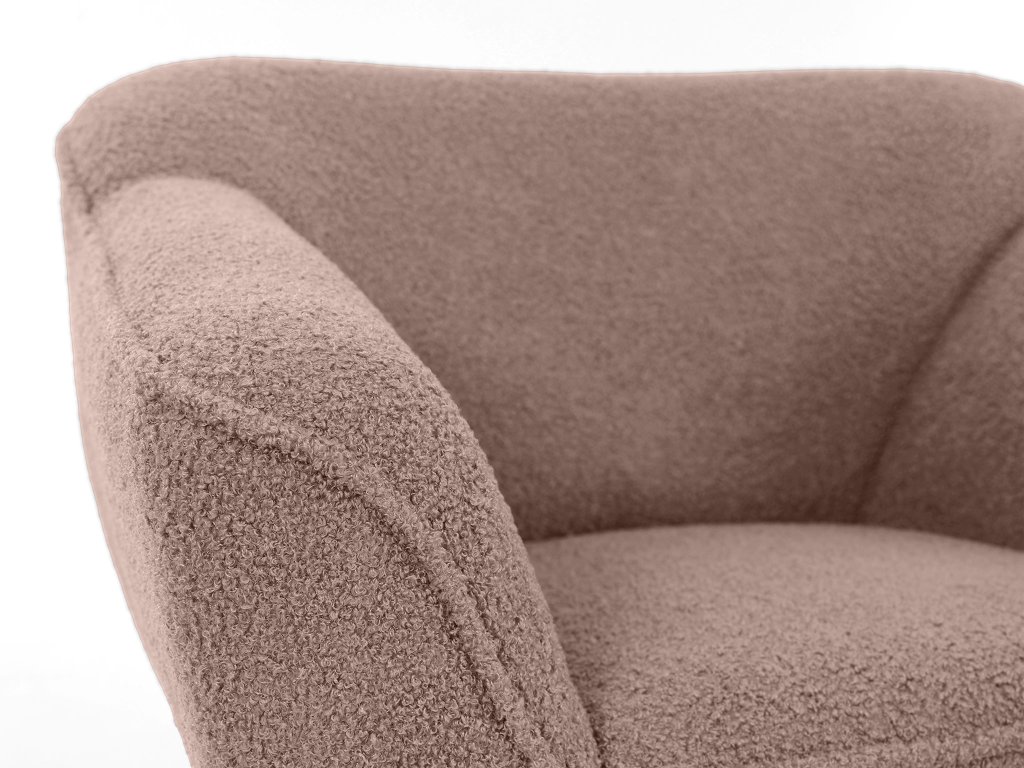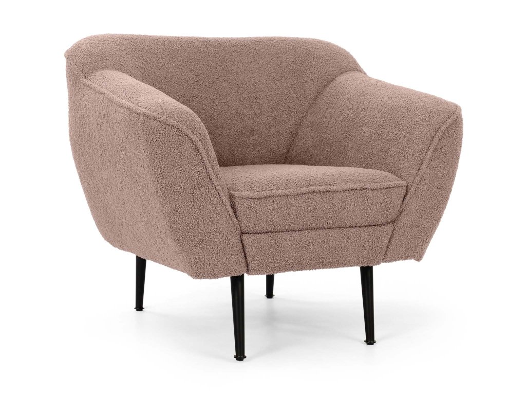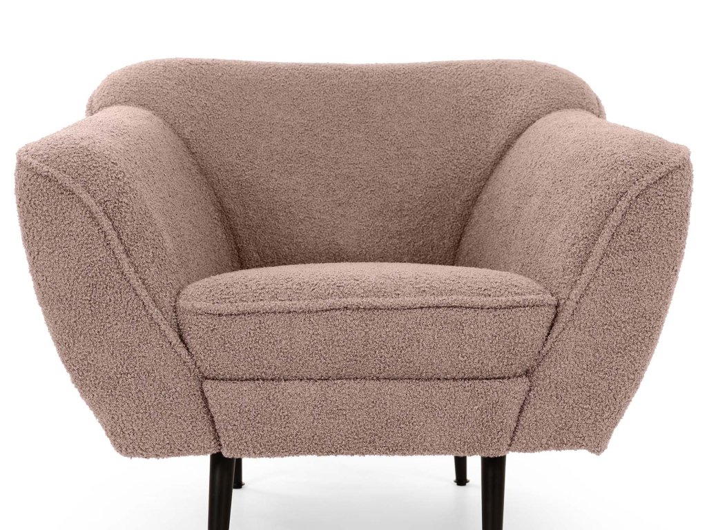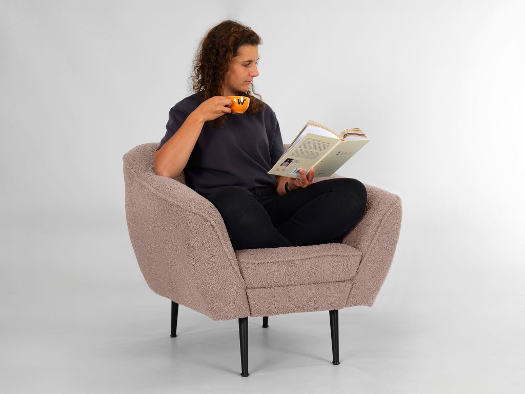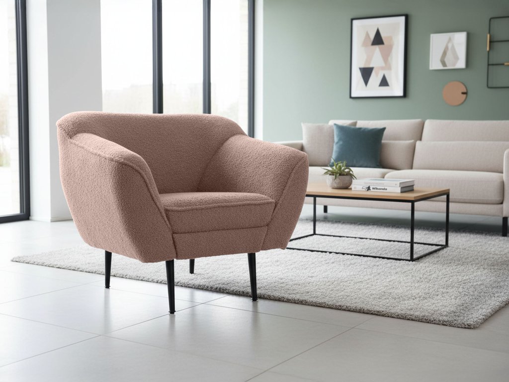 Jemné, pôvabné a zároveň moderné – také je čalúnené kreslo Bowy v ružovom prevedení. Jeho oblý tvar a čierne kovové nohy tvoria harmonickú kombináciu elegancie a ľahkosti, ktorá vynikne v každej obývačke, spálni či pracovni. Látka Now or Never v štruktúre bouclé pôsobí mäkko, hebko a hrejivo, akoby vás obklopila jemným dotykom. Svojou kučeravou textúrou pripomína jahňaciu vlnu a dodáva interiéru osobitý, útulný charakter. Kvalitné vlnité pružiny a peny vysokej hustoty zabezpečujú pohodlie, ktoré oceníte pri každom posedení.