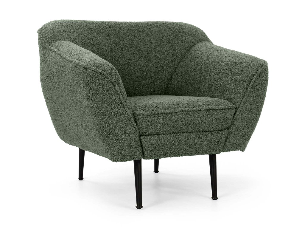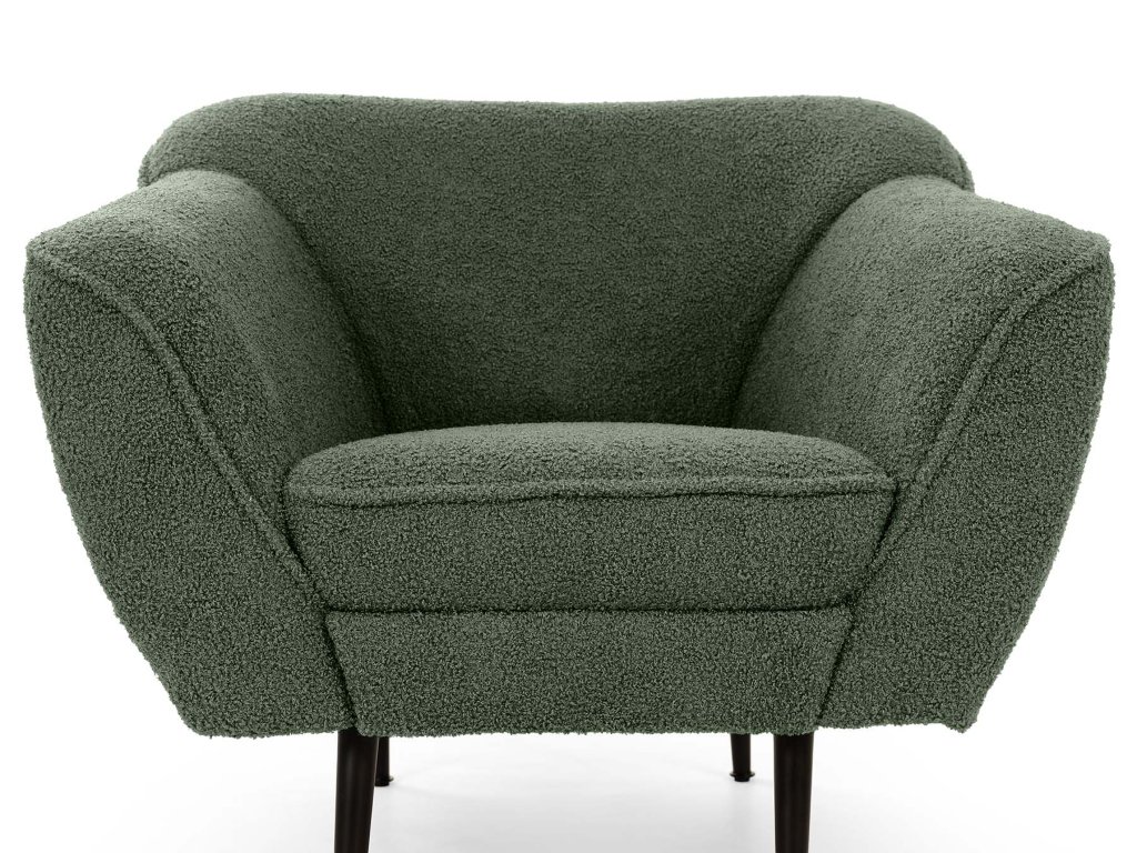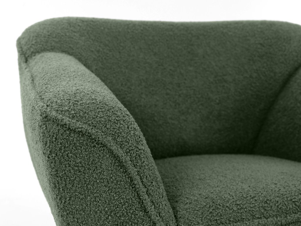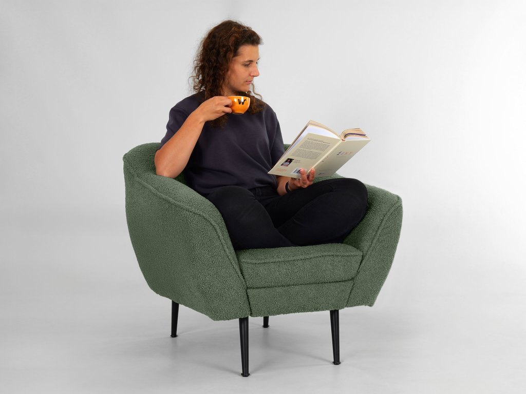 Do vášho interiéru vnesie sviežosť prírody, jemnosť tvarov a útulnú atmosféru. Čalúnené kreslo Bowy v zelenom prevedení zaujme svojou nadčasovou eleganciou a čistým dizajnom, ktorý dokonale zapadne do moderných aj klasických priestorov. Jeho mäkké čalúnenie z látky Now or Never v štruktúre bouclé je neodolateľne hebké a príjemne hrejivé. Povrch s typickými slučkami pripomína kučeravú jahňaciu vlnu a pôsobí prirodzene aj luxusne zároveň. Stabilné čierne kovové nohy dodávajú kreslu moderný akcent, zatiaľ čo pohodlné sedadlo s vlnitými pružinami a penou vysokej hustoty sa postará o výnimočný komfort pri relaxe.