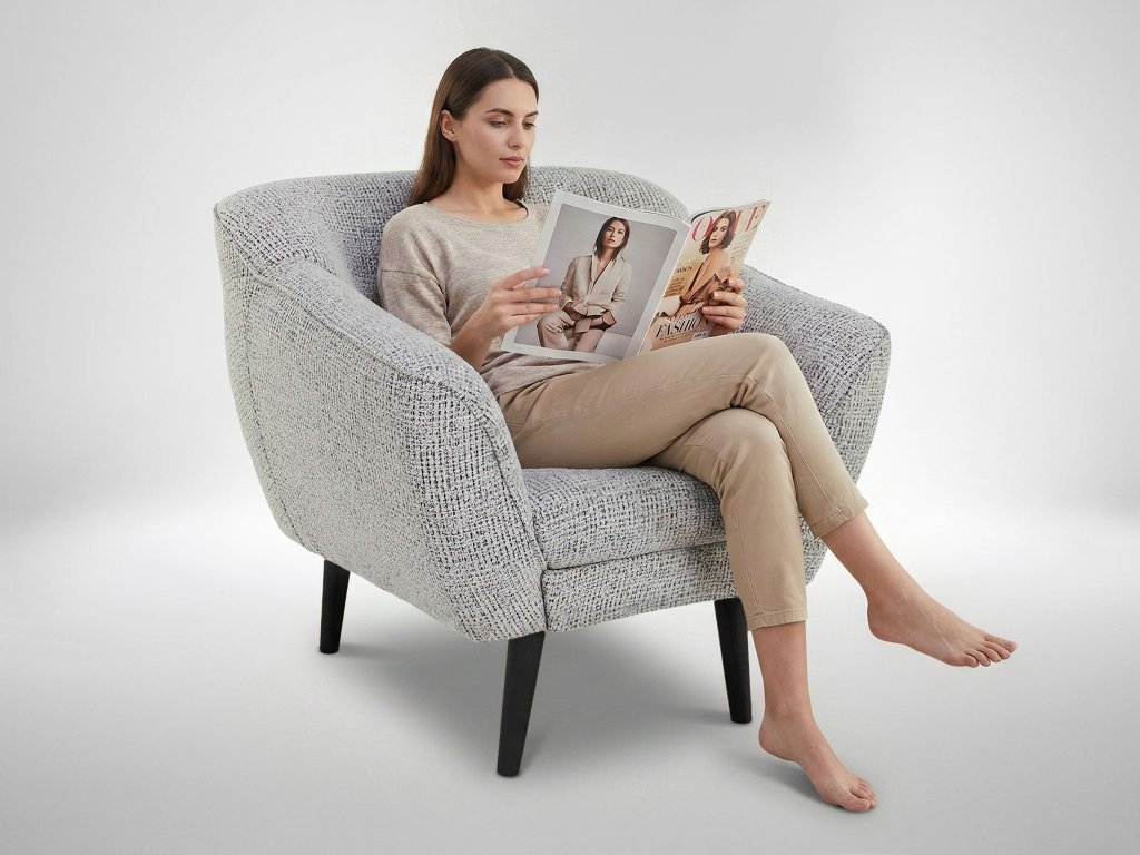 Váš interiér rozžiari kreslo Coco v škandinávskom štýle. Vyrobené je z kvalitných materiálov, ktoré zaručujú stabilitu kresla. Jedinečné kreslo skvelo vynikne nie len v obývačke ale aj v spálni, pracovni alebo ako praktický doplnok v chodbe. Nadčasová viacfarebná látka Coco je husto tkaná. Farba látky je viacero odtieňov sivej prepletené s bielou. Coco látka je pevná a odolná voči oderom vďaka čomu sa nežmolkuje. Na profilované operadlo a opierky je použitá pena o tvrdosti T25, na sedadlo T30. Kvalitné kreslo je dodávané s čiernymi nožičkami.