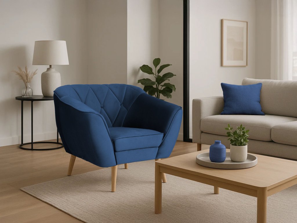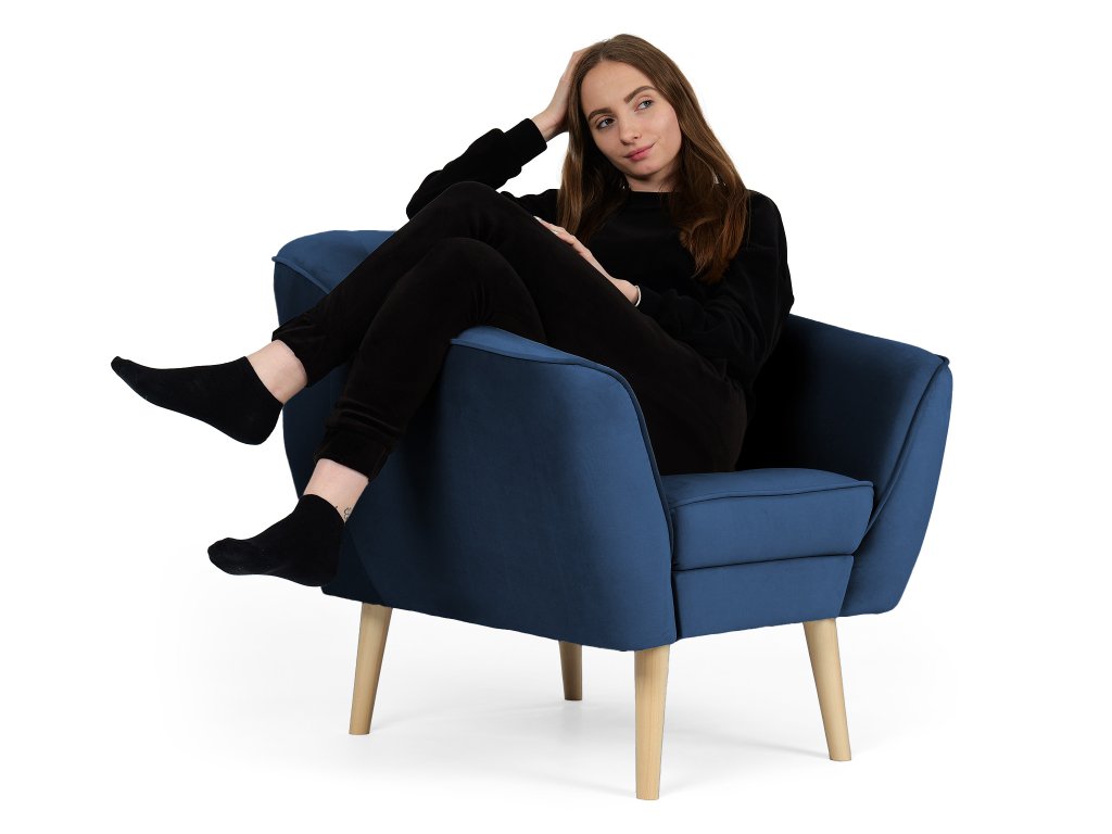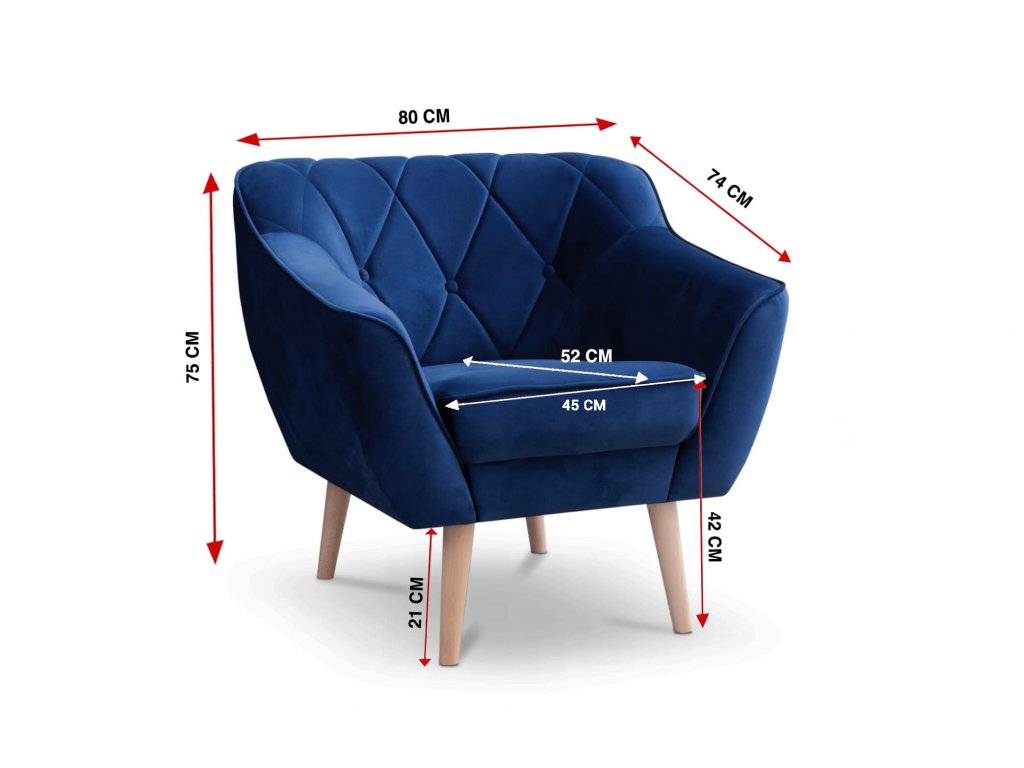 Súčasťou kolekcie Deana je aj toto pohodlné kreslo v škandinávskom štýle. Kreslo je vyrobené z kvalitných materiálov a umiestníte ho jednoducho do obývačky, spálne či len ako praktický doplnok do chodby. Látka typu Velur Royal je príjemná a jemná na dotyk a zároveň sa nežmolkuje. Celkový vzhľad kresla dopĺňa vkusné prešívanie na jeho operadle. Na profilované operadlo a opierky je použitá pena o tvrdosti T25, na sedadlo T30. Kreslo stojí na nožičkách z prírodného dreva.
