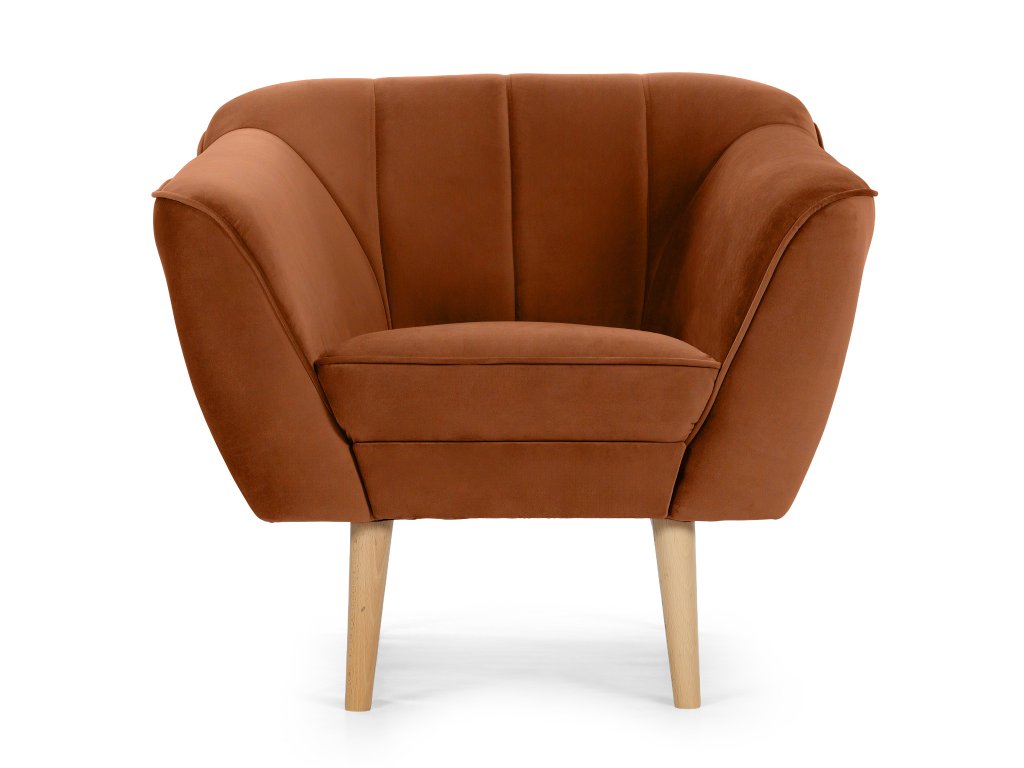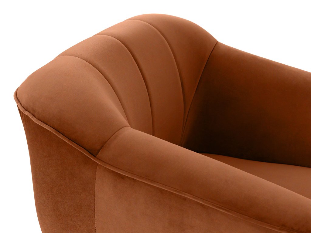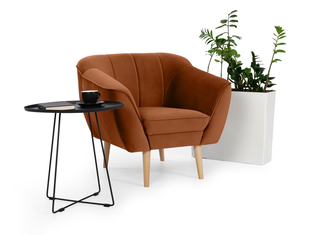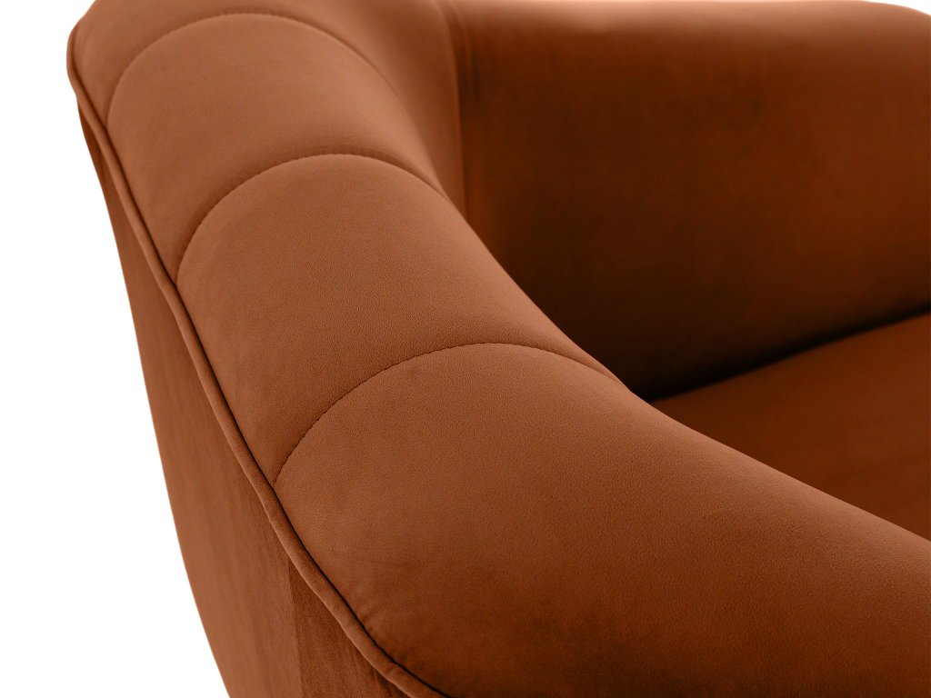 Čalúnené kreslo Diva v tehlovom odtieni okamžite upúta svojím moderným vzhľadom a precíznym prešívaním na operadle. Jemná látka Riviera, z ktorej je kreslo čalúnené, patrí medzi kvalitné velúrové materiály. Je mäkká na dotyk, no zároveň mimoriadne odolná voči opotrebovaniu, žmolkovaniu či rozťahovaniu. Tehlová farba dodáva jedinečný štýl, vďaka čomu sa kreslo Diva stane prirodzeným doplnkom vašej obývačky, čítacieho kútika aj kancelárie.