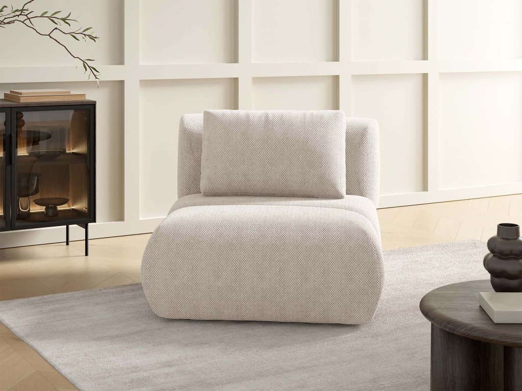 Pohovka Dot v jemnom béžovom odtieni v sebe spája čistý dizajn a praktickú premenu – z elegantného kresla sa v okamihu stáva pohodlný taburet. Jej univerzálny vzhľad dodá každému interiéru príjemnú rovnováhu medzi štýlom a funkčnosťou. Béžová farba pôsobí teplo, neutrálne a nadčasovo – skvele ladí s prírodnými materiálmi aj modernými prvkami. Dot je ideálnym riešením do menších priestorov, kde každý detail zohráva svoju úlohu.