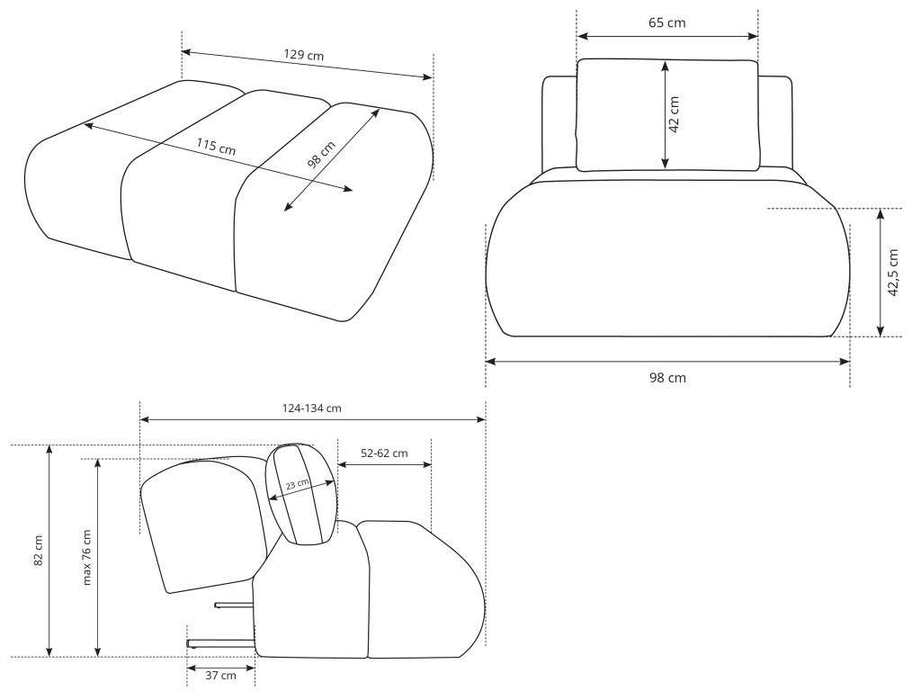 - Rozmery (šxvxh): 98 x 82 x 124-134 cm