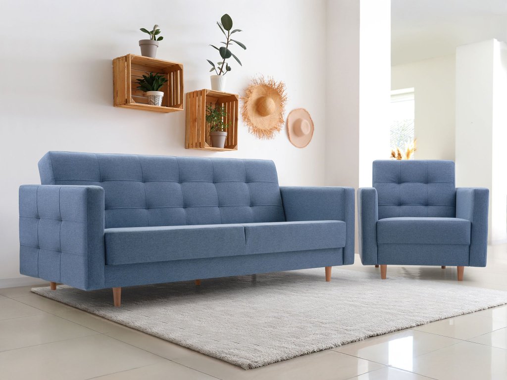 - Materiál: čalúnenie látkou Norn 86, drevené nožičky, masívne drevo, nábytková doska, pružiny Bonell, elastická pena T30