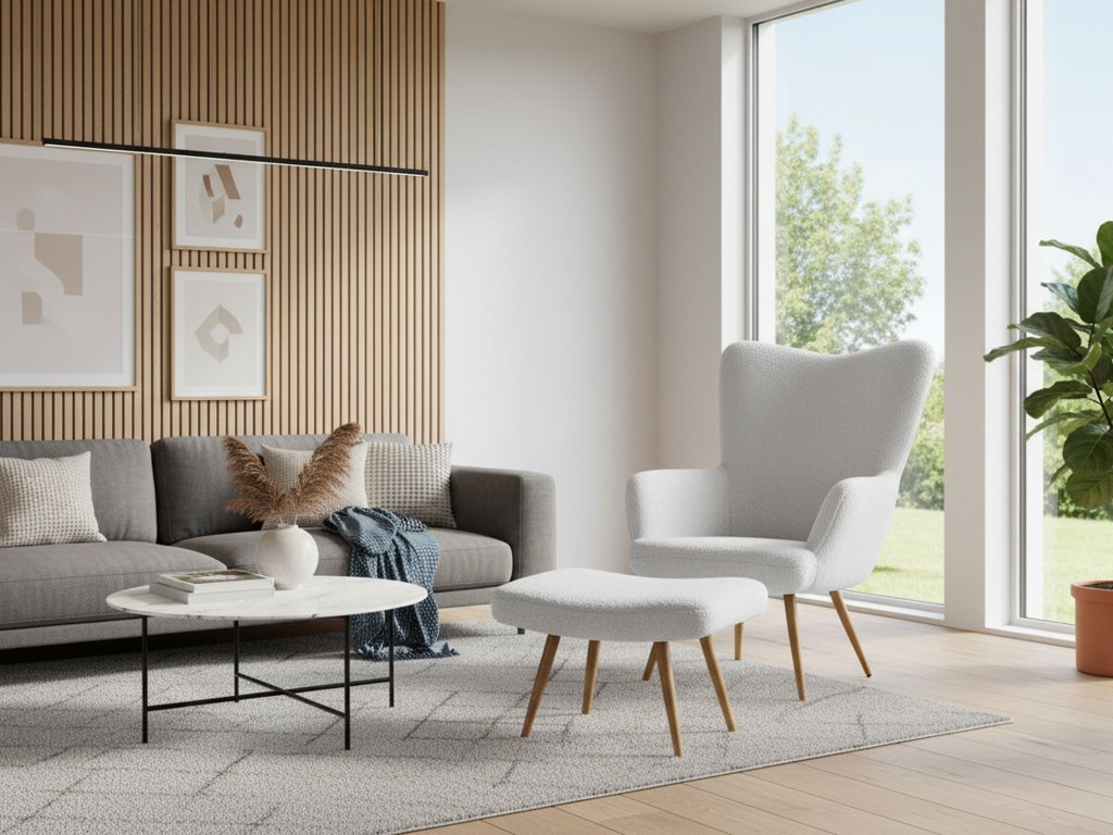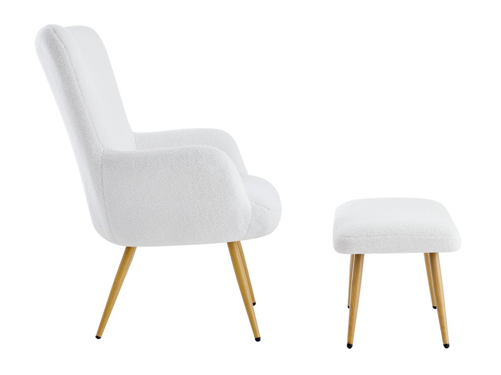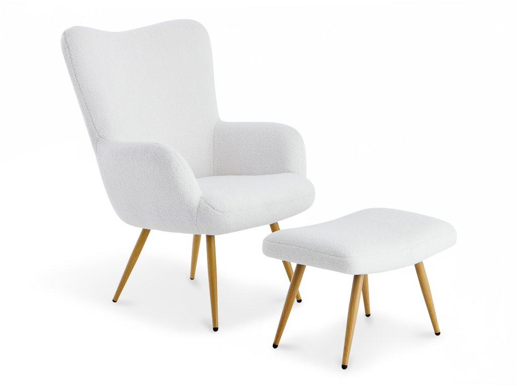 Elegantné kreslo s podnožkou Glasglow je dokonalou voľbou pre každého, kto hľadá spojenie moderného dizajnu a maximálneho pohodlia. Jeho nadčasová biela farba zapadne do obývačky aj spálne, kde vytvoria príjemný relaxačný kútik. Kreslo aj taburet sú čalúnené vysoko kvalitnou bouclé látkou, ktorá je mimoriadne mäkká, príjemná na dotyk a pritom odolná. Stabilná konštrukcia je vyrobená z preglejky a kovu, pričom pohodlné sedenie zabezpečuje pena s optimálnou tuhosťou. Dizajn dopĺňajú elegantne naklonené nohy v dubovej farbe. Na koncoch nôh sa nachádzajú protišmykové prvky, ktoré chránia podlahu a bránia neželanému pohybu kresla. Súčasťou je aj praktická podnožka, ideálna na vyloženie nôh počas oddychu. Set Glasglow tak poskytuje nielen vysoký komfort, ale aj estetickú hodnotu, ktorá osvieži každý interiér.