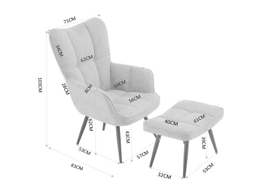 - Rozmer kresla (šxvxh): 71 x 103 x 83 cm