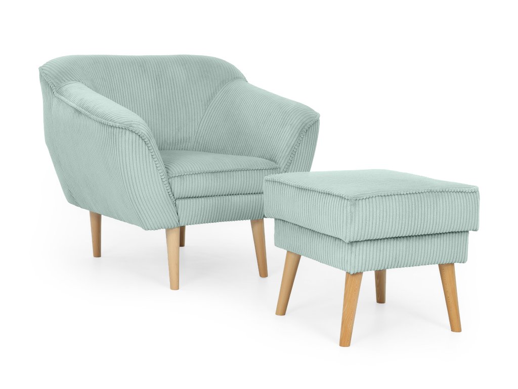 Kreslo s taburetom Dory v mentolovej – svieži dizajn pre váš každodenný relax