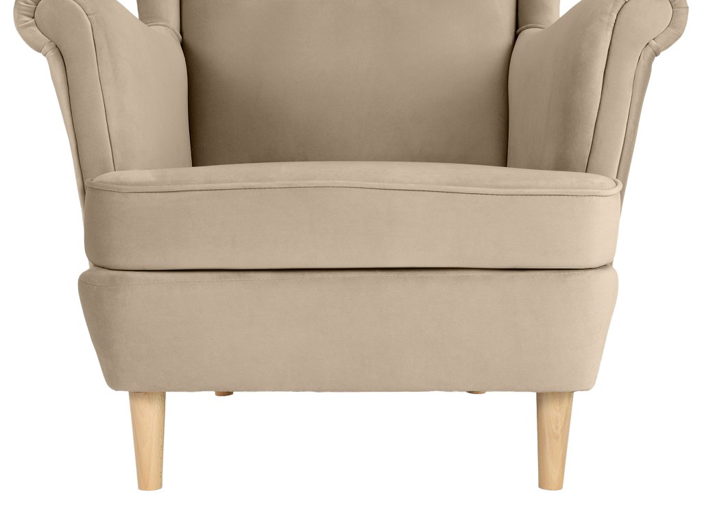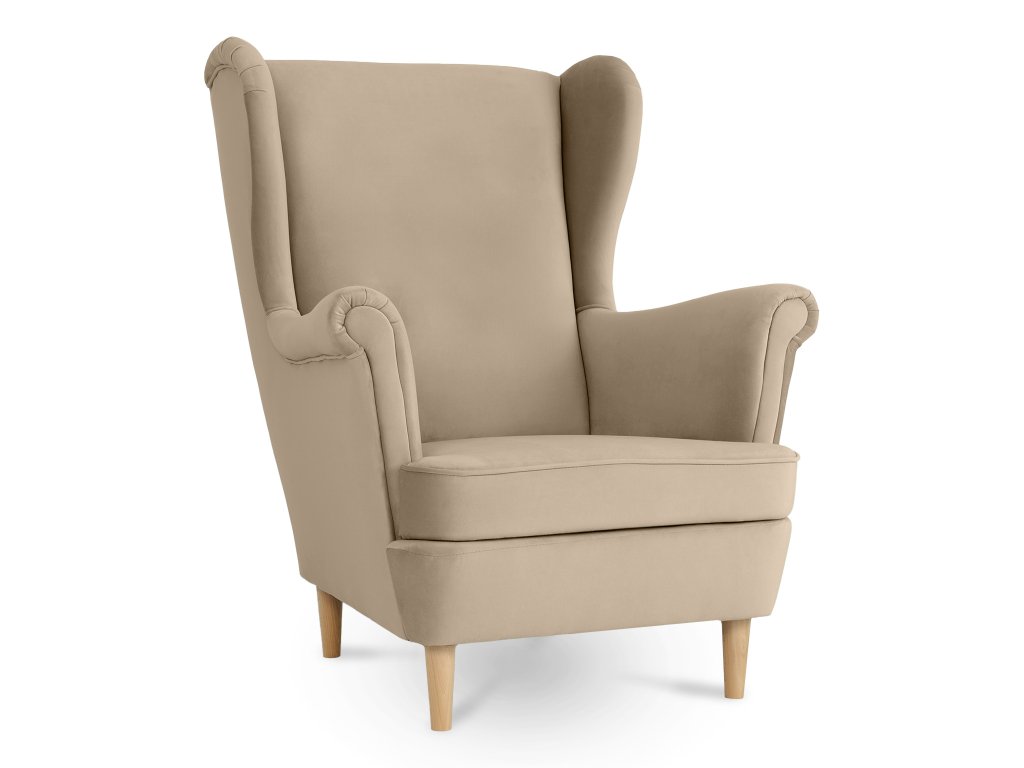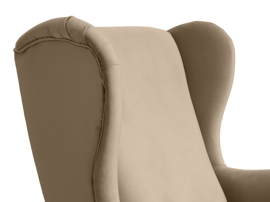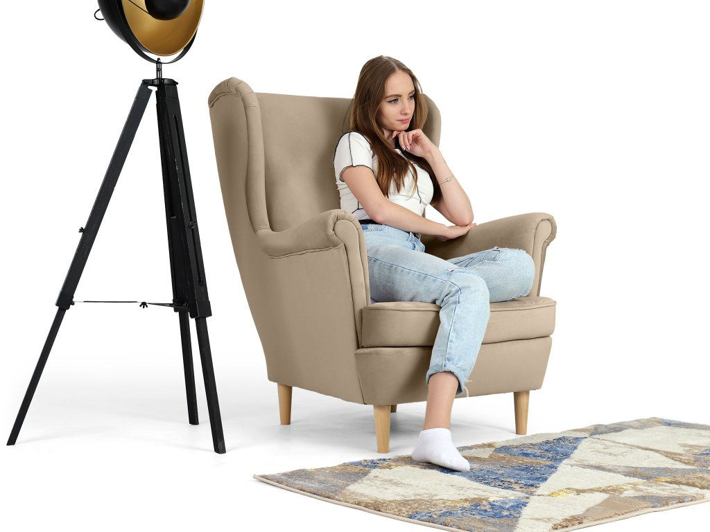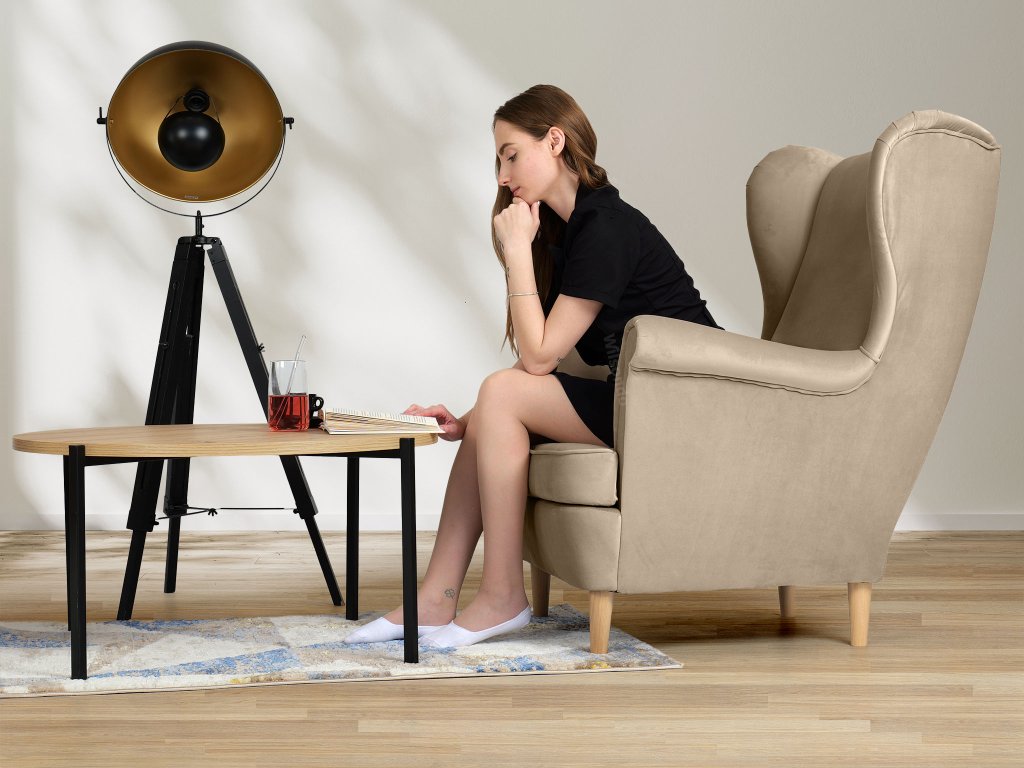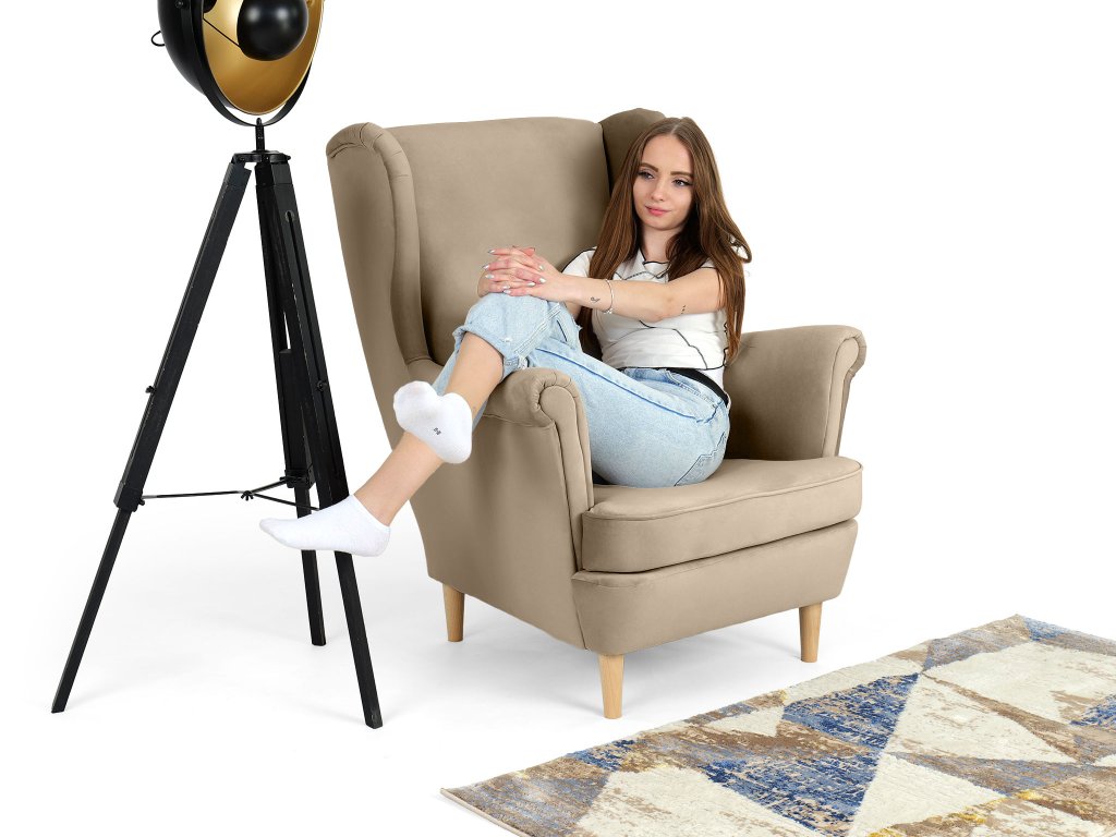 Kreslo ušiak Bjorn v béžovej farbe je dizajnový nábytok, ktorý dokáže premeniť atmosféru celej miestnosti. Už na prvý pohľad zaujme svojim nadčasovým vzhľadom. Poťah z látky Magic Velvet pôsobí príjemne na dotyk, je matný a bez lesku, čo mu dodáva moderný charakter. Táto tkanina patrí medzi prémiové materiály. Je odolná voči škvrnám, nepremokavá, nehorľavá, vysoko oderuvzdorná a zároveň chráni povrch pred škrabancami. Stabilnú a pevnú konštrukciu kreslu dodávajú nožičky z masívneho prírodného dreva, ktoré sú nielen estetickým, ale aj funkčným detailom. Profilované operadlo sa dokonale prispôsobí vášmu chrbtu a sedadlo s penou strednej tvrdosti T30 poskytuje ideálny kompromis medzi mäkkosťou a oporou. Vďaka tomu je kreslo vhodné na dlhé sedenie pri práci, oddych s knihou alebo chvíle relaxu pri televízii.