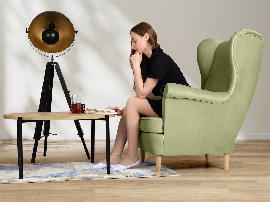 Oživte svoj domov štýlovým kreslom ušiak Bjorn v elegantnom zelenom odtieni. Tento nábytok nie je len obyčajným nábytkom na sedenie. Jeho jedinečný dizajn okamžite upúta pozornosť. Poťah z jemného Magic Velvet materiálu je matný a príjemný na dotyk, zároveň odolný proti oderu, škvrnám, vlhkosti aj vysokým teplotám. Masívne drevené nožičky pridávajú stabilitu a luxusný dojem, zatiaľ čo ergonomicky tvarované operadlo a sedadlo s penou strednej tvrdosti (T30) poskytujú pohodlnú podporu chrbta. Vďaka tomu je kreslo ideálne na dlhé chvíle relaxu, čítanie či sledovanie obľúbeného seriálu.