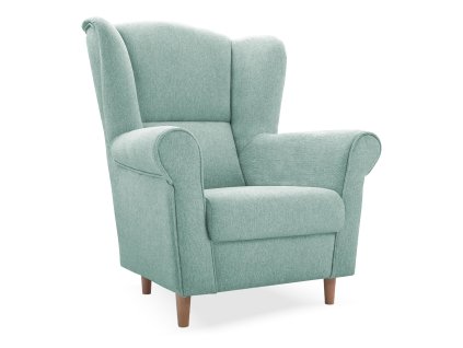 Štýlové kreslo Loft v mentolovej farbe s drevenými nohami oživí každý moderný interiér