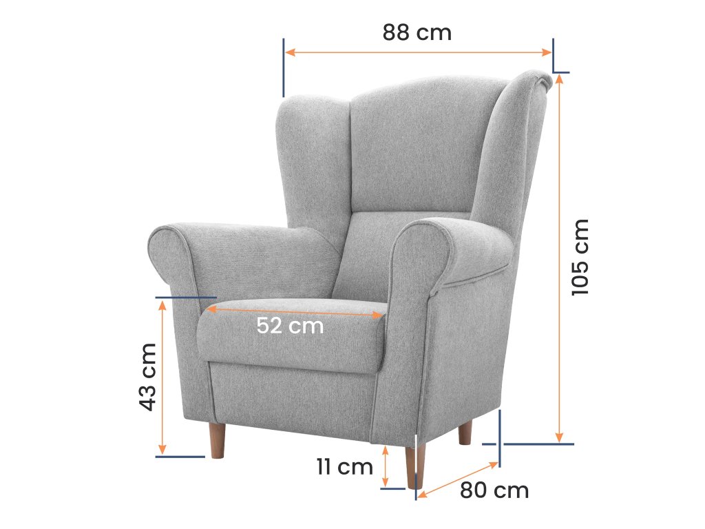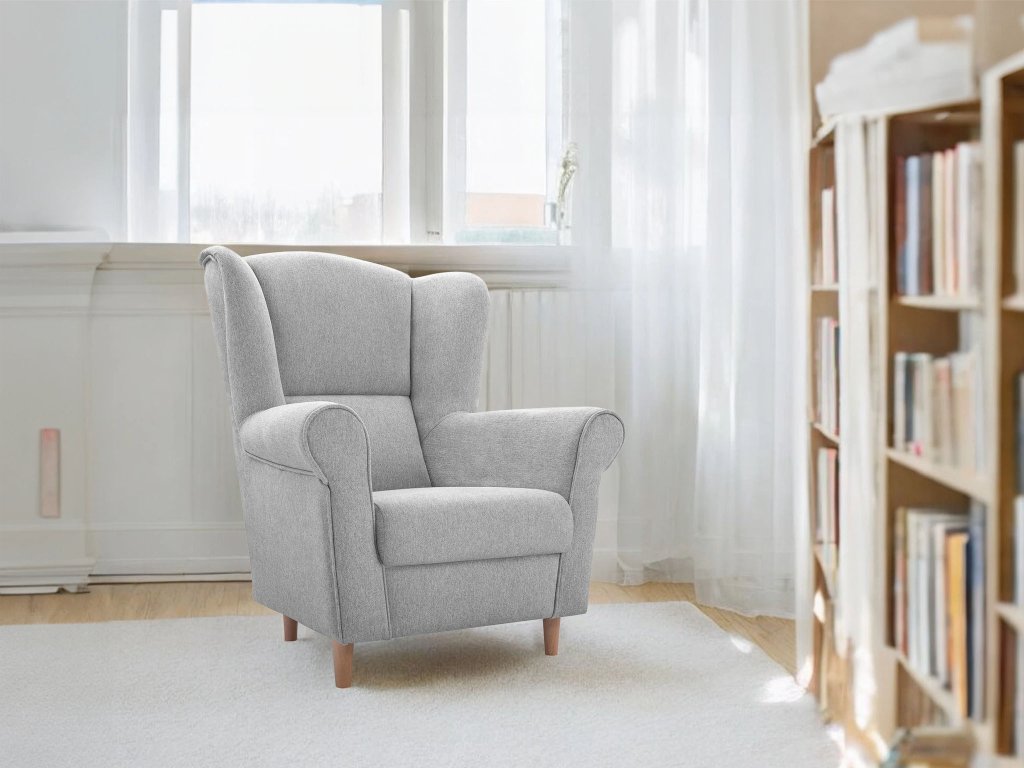 Retro svetlosivý ušiak Loft je ukážkou toho, ako sa jednoduchosť môže stať výnimočnou. Je ideálnou voľbou pre tých, ktorí hľadajú univerzálny a štýlový kúsok, ktorý zapadne do každého moderného alebo škandinávskeho interiéru. Vďaka svojej neutrálnej farebnosti krásne doplní ostatný nábytok a zároveň vynikne ako samostatný dizajnový prvok. Tvarované operadlo, mäkké sedadlo a drevené nohy vytvárajú kombináciu pohodlia a estetickej čistoty. Vnútorná výplň pozostáva z pružiny WAVE, kvalitnej peny a gumených pásov, vďaka čomu je sedenie pevné, ale zároveň príjemne mäkké. Zadná časť kresla je čalúnená rovnakou látkou, preto ho môžete voľne umiestniť aj do priestoru. Poťahová látka AVRA 16 je svetlosivá, jemná na dotyk, veľmi odolná voči oderu a bezpečná pre deti i alergikov. Kreslo Loft sa stane vaším obľúbeným miestom na oddych pri knihe, káve či večernom filme.