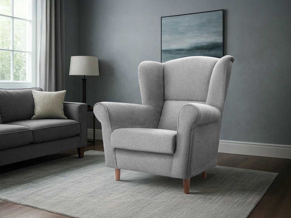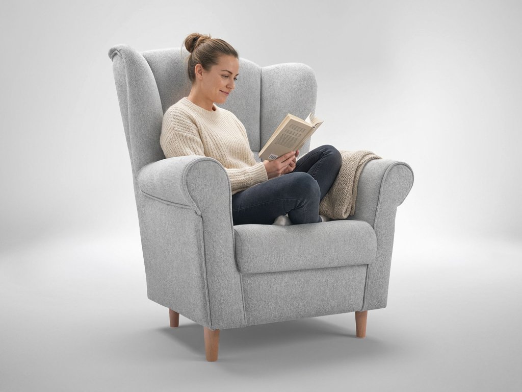 Retro svetlosivý ušiak Loft je ukážkou toho, ako sa jednoduchosť môže stať výnimočnou. Je ideálnou voľbou pre tých, ktorí hľadajú univerzálny a štýlový kúsok, ktorý zapadne do každého moderného alebo škandinávskeho interiéru. Vďaka svojej neutrálnej farebnosti krásne doplní ostatný nábytok a zároveň vynikne ako samostatný dizajnový prvok. Tvarované operadlo, mäkké sedadlo a drevené nohy vytvárajú kombináciu pohodlia a estetickej čistoty. Vnútorná výplň pozostáva z pružiny WAVE, kvalitnej peny a gumených pásov, vďaka čomu je sedenie pevné, ale zároveň príjemne mäkké. Zadná časť kresla je čalúnená rovnakou látkou, preto ho môžete voľne umiestniť aj do priestoru. Poťahová látka AVRA 16 je svetlosivá, jemná na dotyk, veľmi odolná voči oderu a bezpečná pre deti i alergikov. Kreslo Loft sa stane vaším obľúbeným miestom na oddych pri knihe, káve či večernom filme.