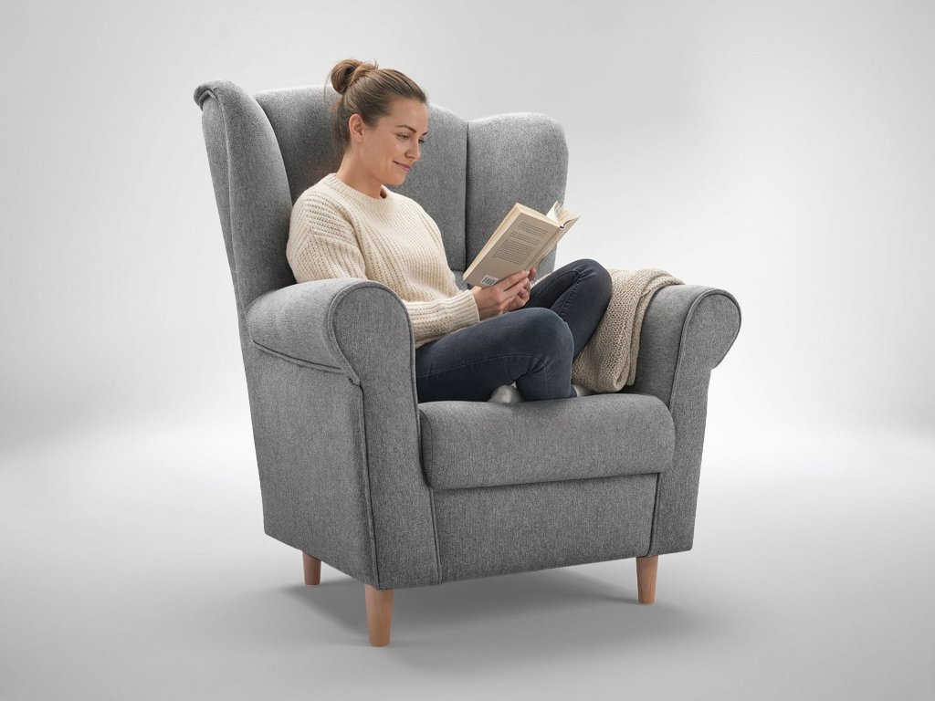 Tmavosivé kreslo - ušiak Loft je výrazným dizajnovým prvkom, ktorý dodá vašej obývačke sofistikovaný charakter. Vďaka štýlovému tvaru, vysokému operadlu a výrazným dreveným nožičkám skvele zapadne do moderného, loftového aj škandinávskeho interiéru. Jeho nadčasový vzhľad je vyvážený maximálnym komfortom. Operadlo je ergonomicky tvarované a poskytuje pevnú oporu chrbtici, zatiaľ čo sedadlo je vyplnené kombináciou pružiny WAVE, kvalitnej peny a gumených pásov pre ešte pohodlnejšie sedenie. Tmavosivý poťah z látky AVRA je jemný na dotyk, odolný voči oderu a bezpečný aj pre deti či alergikov. Zadná časť kresla je čalúnená v rovnakej farbe ako celok, takže ho môžete voľne umiestniť kdekoľvek v priestore. Kreslo Loft nie je len miestom na sedenie – je to dizajnový kúsok, ktorý si zamilujete.