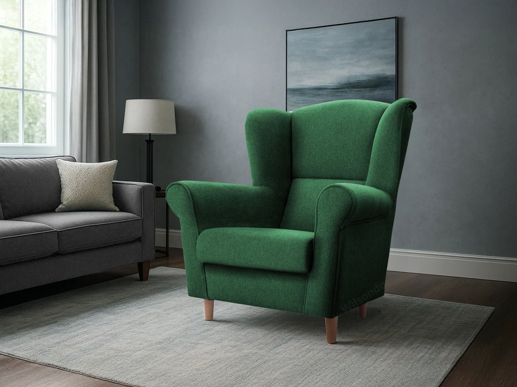 Zelené kreslo - ušiak Loft vnesie do vášho domova sviežosť, pokoj a nádych prírody. Je ideálnym spojením komfortu, funkčnosti a moderného dizajnu. Typický tvar ušiaka, vysoké operadlo a jemne tvarované línie zaručia, že sa v ňom budete cítiť skutočne príjemne – pri relaxe, čítaní aj oddychu po náročnom dni. Sedadlo je vystužené vlnovcovou pružinou WAVE, kvalitnou penou a gumovými pásmi, ktoré sa postarajú o stabilné, no mäkké sedenie. Drevené nohy dodávajú kreslu ľahkosť a nadčasový vzhľad. Vďaka čalúnenej zadnej časti je kreslo vhodné aj do voľného priestoru – nielen ku stene. Poťahová látka AVRA 12 v zelenej farbe je jemná na dotyk, odolná proti oderu a navyše bezpečná aj pre alergikov a deti. Kreslo je vyrobené z kvalitných materiálov, ktoré zaručujú dlhú životnosť a komfort. Dizajnový kúsok, ktorý okamžite zútulní váš interiér.