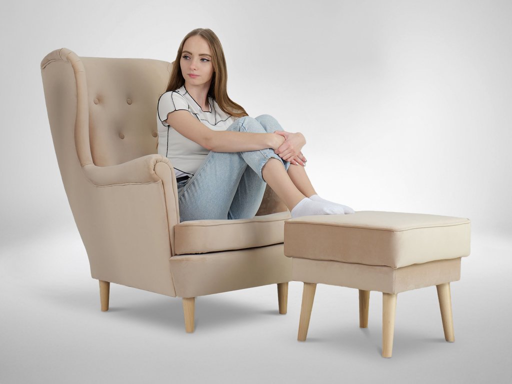 Kreslo ušiak s taburetom Deana - béžová