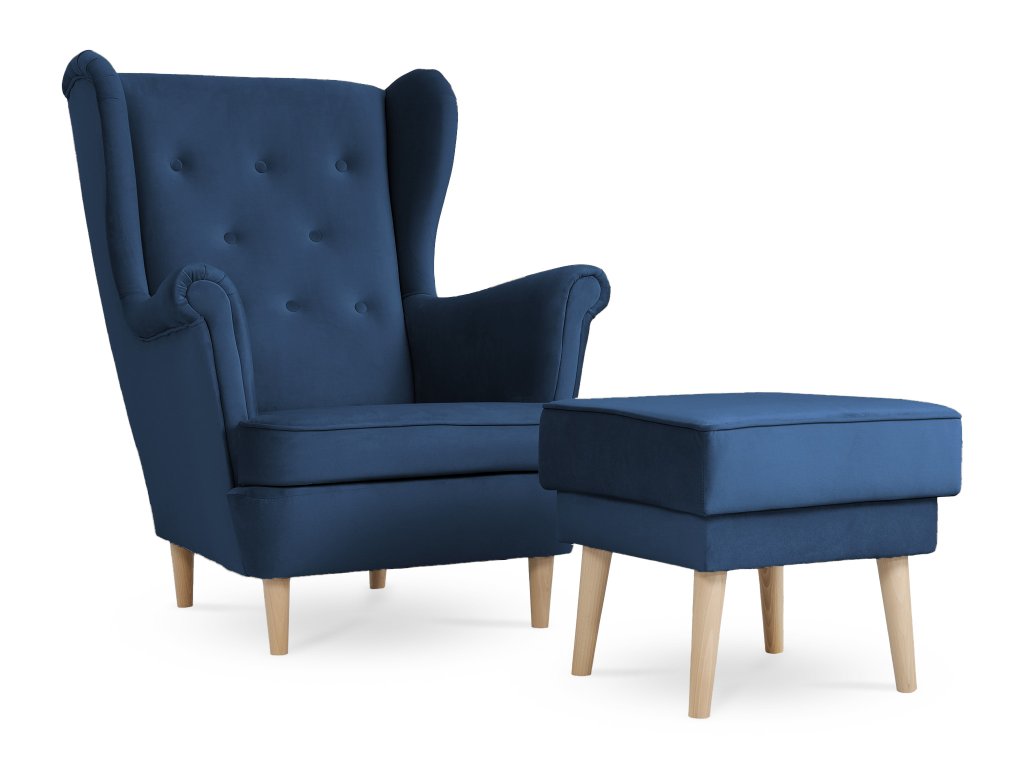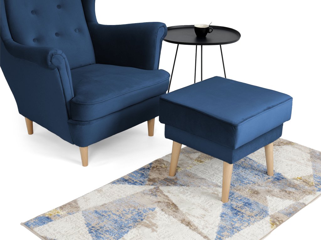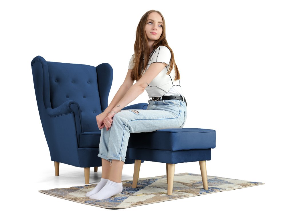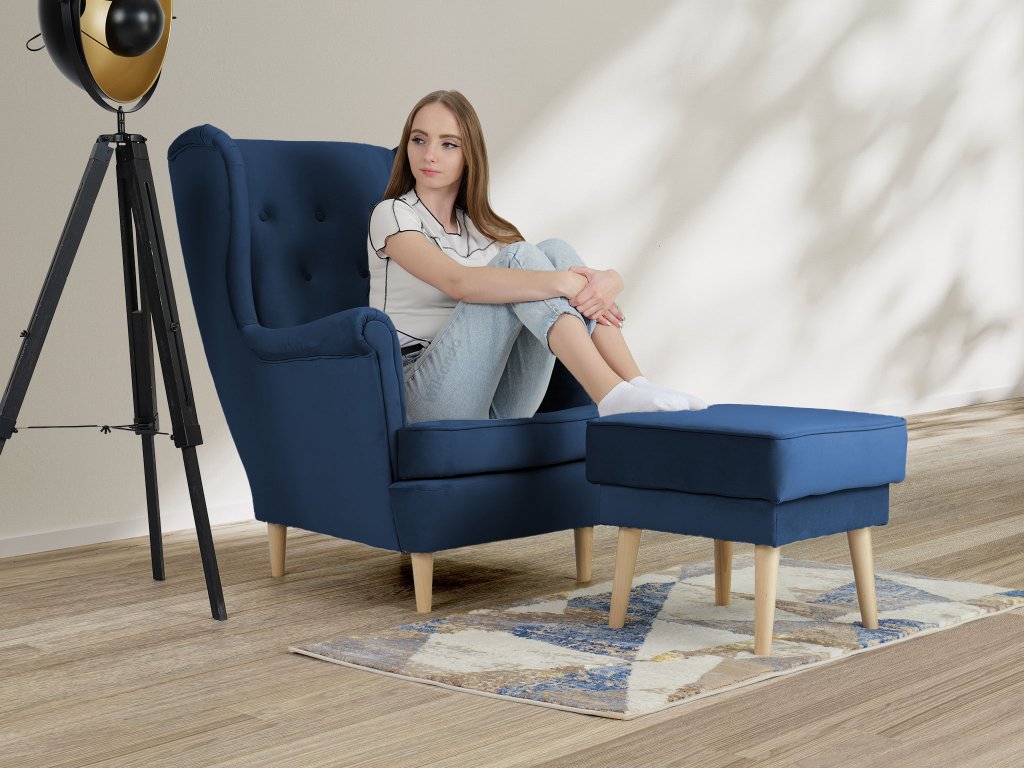 Kreslo ušiak s taburetom Deana - modrá