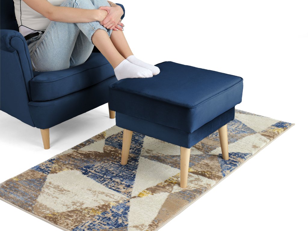 Doprajte si pohodlie a štýl s elegantnou sadou Deana v modrej farbe, ktorá premení váš interiér na oázu oddychu. Kreslo spolu s taburetom čalúnené kvalitnou látkou Velur Royal prinášajú luxusný komfort a nadčasový štýl, ktorý zvládne každodenné používanie. Jemné prešívanie na operadle dodáva celku jedinečný šarm a eleganciu. Pohodlie zaručuje precízne vybraná pena: T25 v operadlovej časti a podrúčkach, T30 v sedacej ploche. Pevné nožičky z masívneho dreva zaisťujú stabilitu a prírodný vzhľad. Praktickým detailom je odnímateľný vrchný matrac ušiaka, ktorý uľahčuje čistenie a údržbu. Tento univerzálny nábytok skvele zapadne do obývačky, spálne či čítacieho kútika.