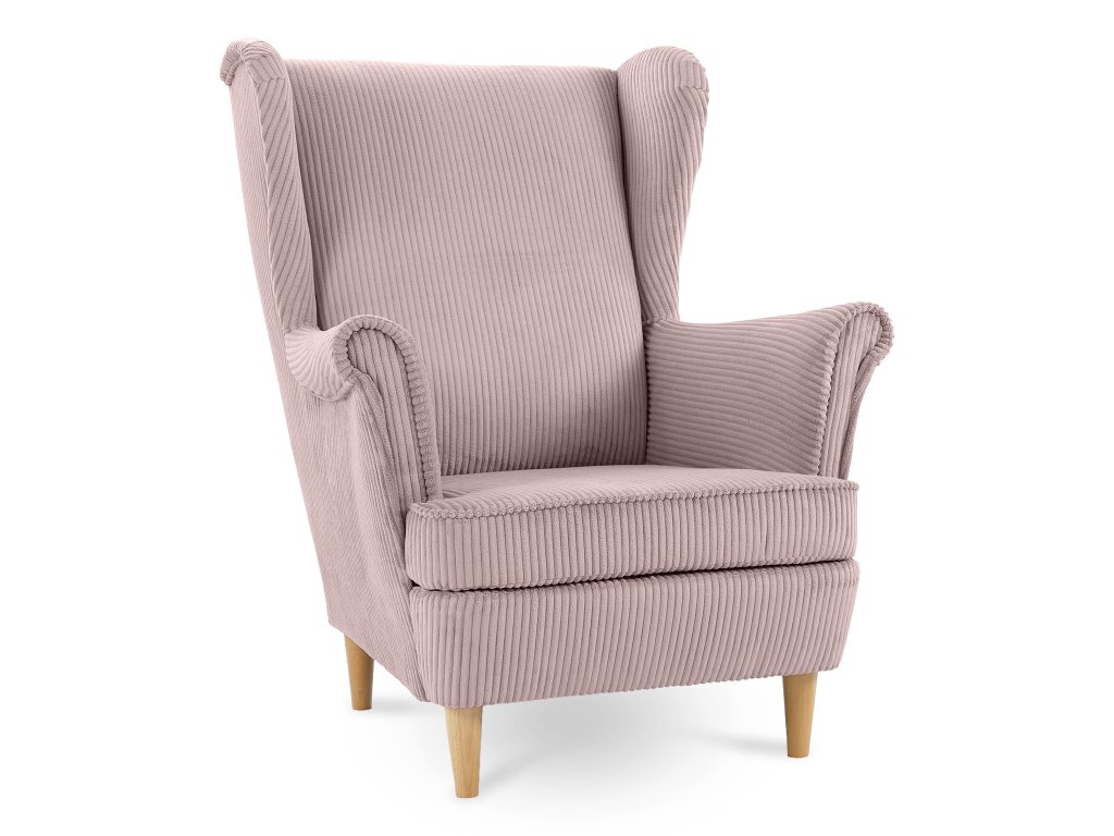 Svetloružový odtieň kresla Dory si pýta jemné a prirodzené kombinácie. Pre ucelený vzhľad odporúčame dekoračné vankúše a deky v podobných pastelových tónoch alebo v odtieňoch krémovej, sivej a bielej farbe. Ak chcete zvýrazniť rustikálny charakter, skombinujte kreslo s vlnenými dekami a masívnym drevom. V prípade, že je u vás v centre pozornosti sedacia súprava v neutrálnych farbách, svetloružový ušiak k nej pridá potrebnú dávku hravosti.