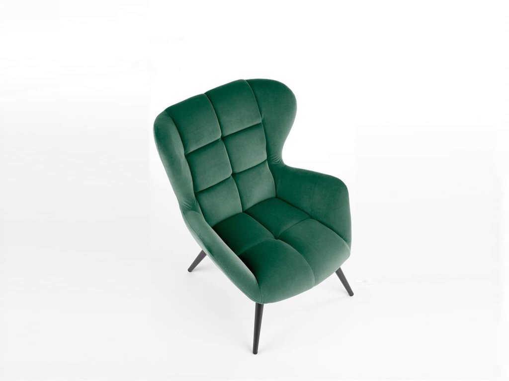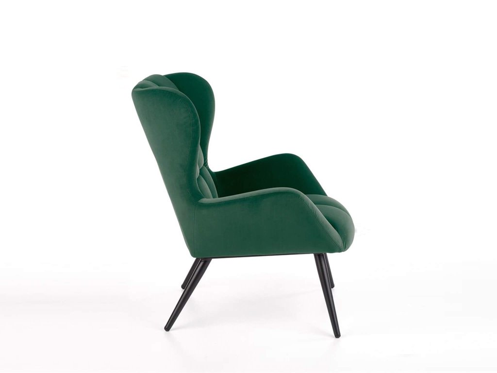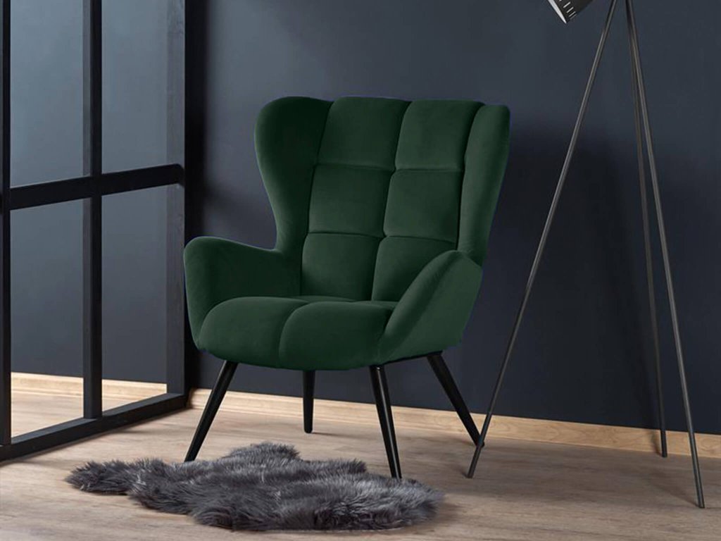 Objavte miesto, kde si oddýchnete po náročnom dni. Pohodlné kresle Tyrion vhodné do každého interiéru. Vďaka svojmu dokonalému vzhľadu nezostane bez povšimnutia. Na výrobu boli použité kvalitné materiály, ktoré sú odolné. Podmanivý vzhľad ušiaka obohatí každý priestor. Štíhle profilované nožičky sú z kovového materiálu v čiernom prevedení. Sedacia časť je mäkká a dopĺňajú ju lakťové opierky, ktoré zaručia najvyššie pohodlie. Čalúnenie je veľmi obľúbenou a vyhľadávanou zamatovou zelenou látkou. Charakteristickým znakom zamatovej látky je zmena odtieňa farby pri prejdení po povrchu rukou. Dekoratívne prešívanie sedacej časti a vysokého operadla dodáva kreslu eleganciu a dotvára celkový dojem. Kreslo ušiak vhodné do obývačky aj spálne a skvelo bude vyzerať aj v pracovni alebo pri kozmetickom stolíku.