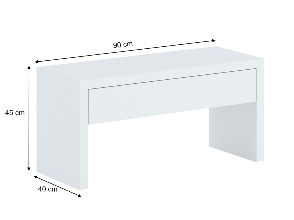 Lesklý laminát prináša nádych sofistikovanosti a súčasného štýlu. Lavica s dĺžkou 90 cm poskytuje dostatok priestoru na odkladanie tašiek či iných drobností, keď odchádzate z domu. Zásuvka je ideálnym miestom na uloženie krému na topánky, kief, čiapok, rukavíc či šálov.