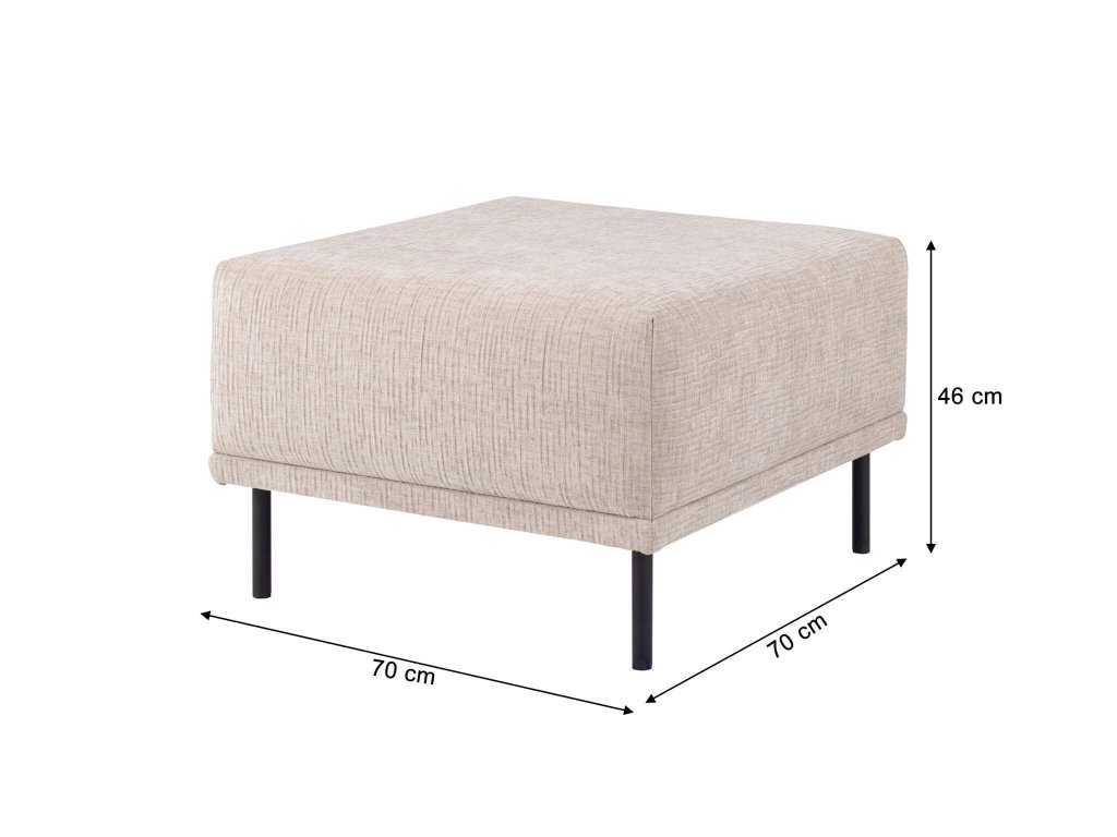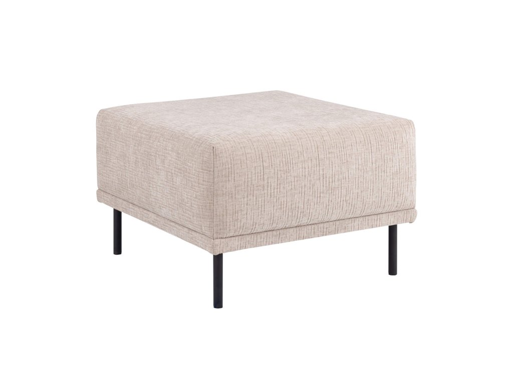Elegantný béžový taburet Modulo pekne doplní zariadenie vašej obývačky. Vďaka taburetke budete mať ďalšie miesto na sedenie a zároveň možnosť pohodlne si vyložiť nohy pri sledovaní obľúbeného filmu. Taburet stojí na vysokých kovových nožičkách čiernej farby. V ponuke máme aj väčší taburet z rovnakej kolekcie modulárneho nábytku.