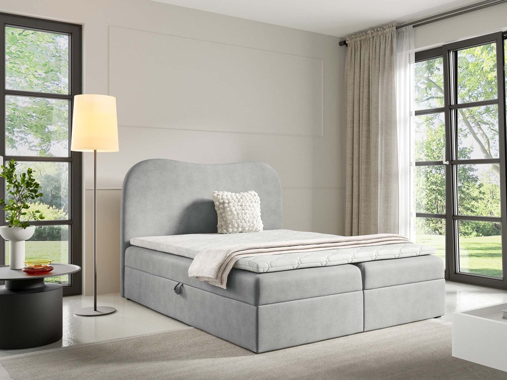 Manželská boxspring posteľ s úložným priestorom Ambra Lux 160x200 - svetlosivá