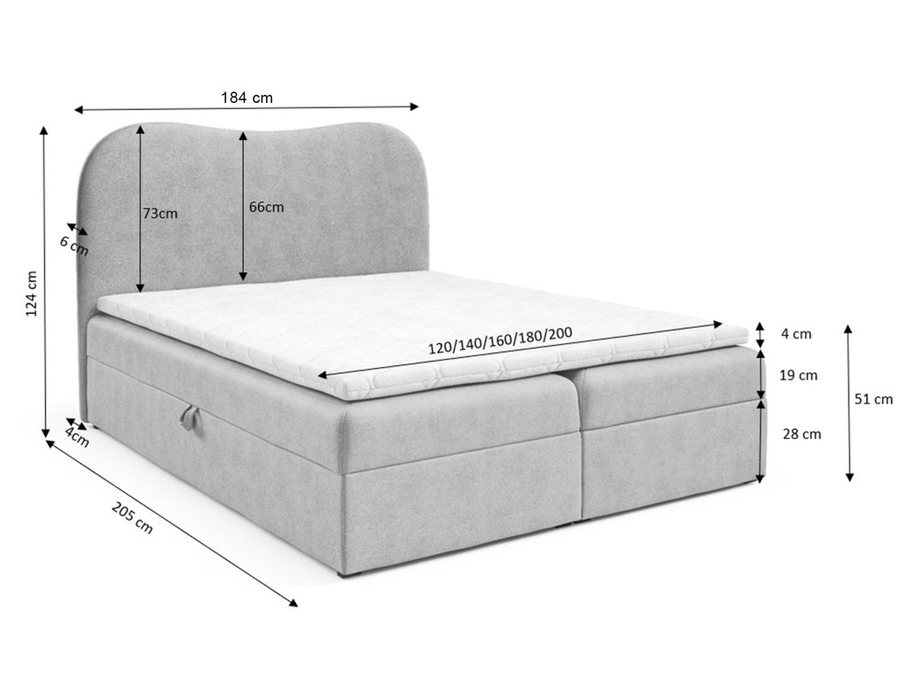 - Rozmer pre matrac: 200 x 180 cm