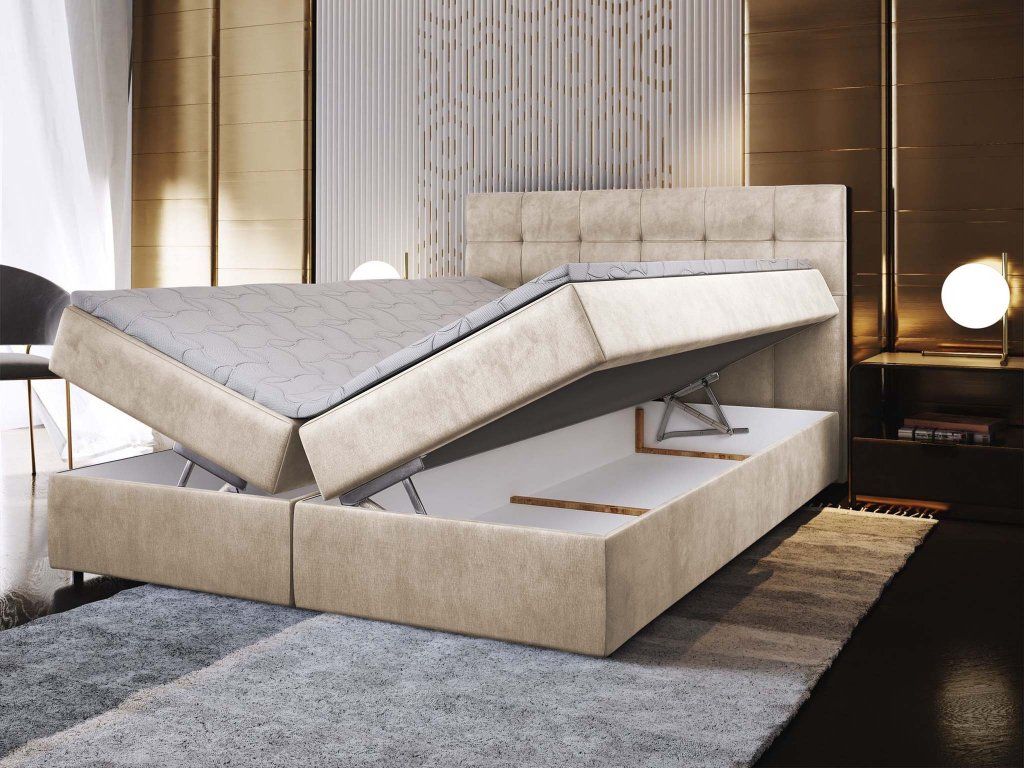 Manželská boxspring posteľ s úložným priestorom Glos M 180x200 - krémová - poškodený