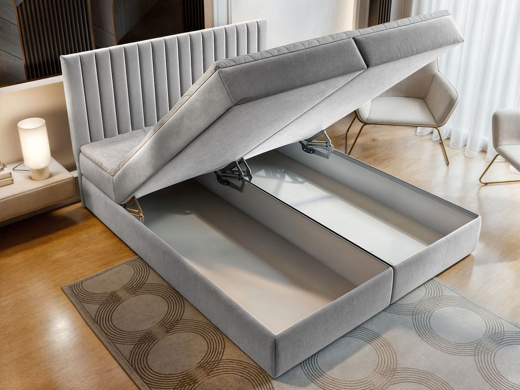 Manželská boxspring posteľ s úložným priestorom Murlo 180x200 - svetlosivá