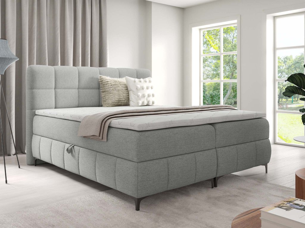 Manželská boxspring posteľ s úložným priestorom Zophie 200x200 - svetlosivá