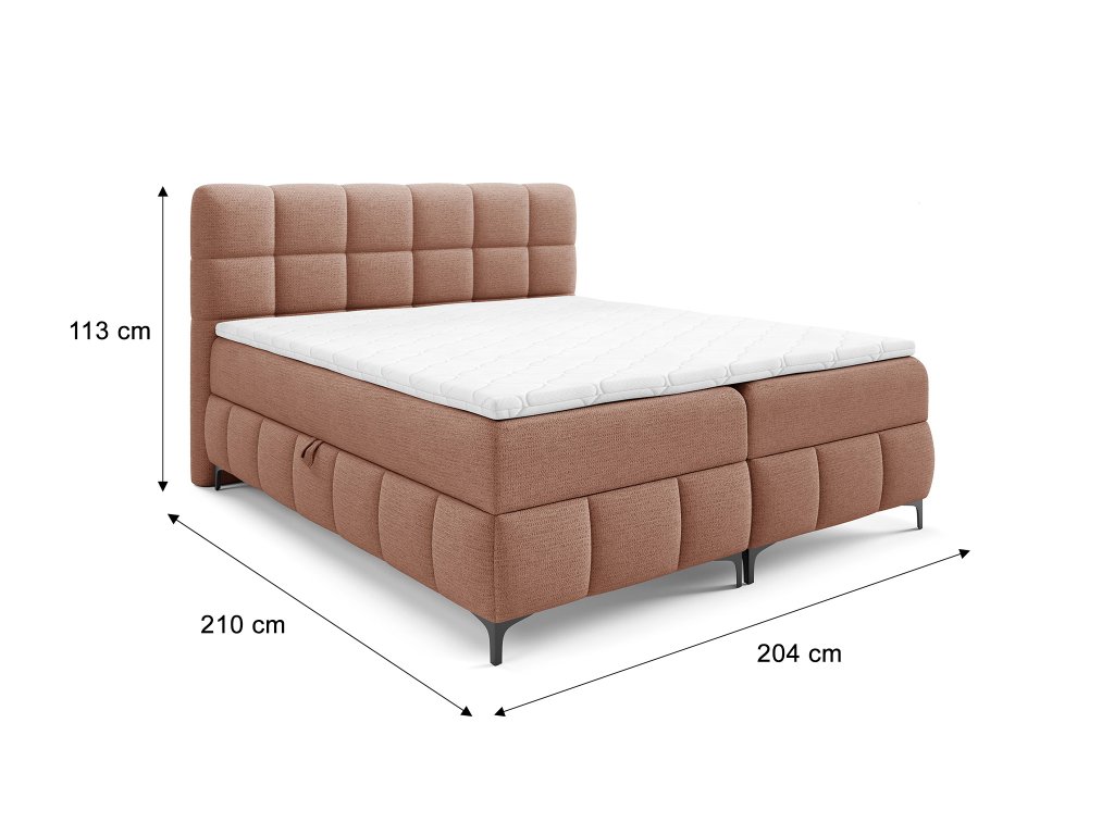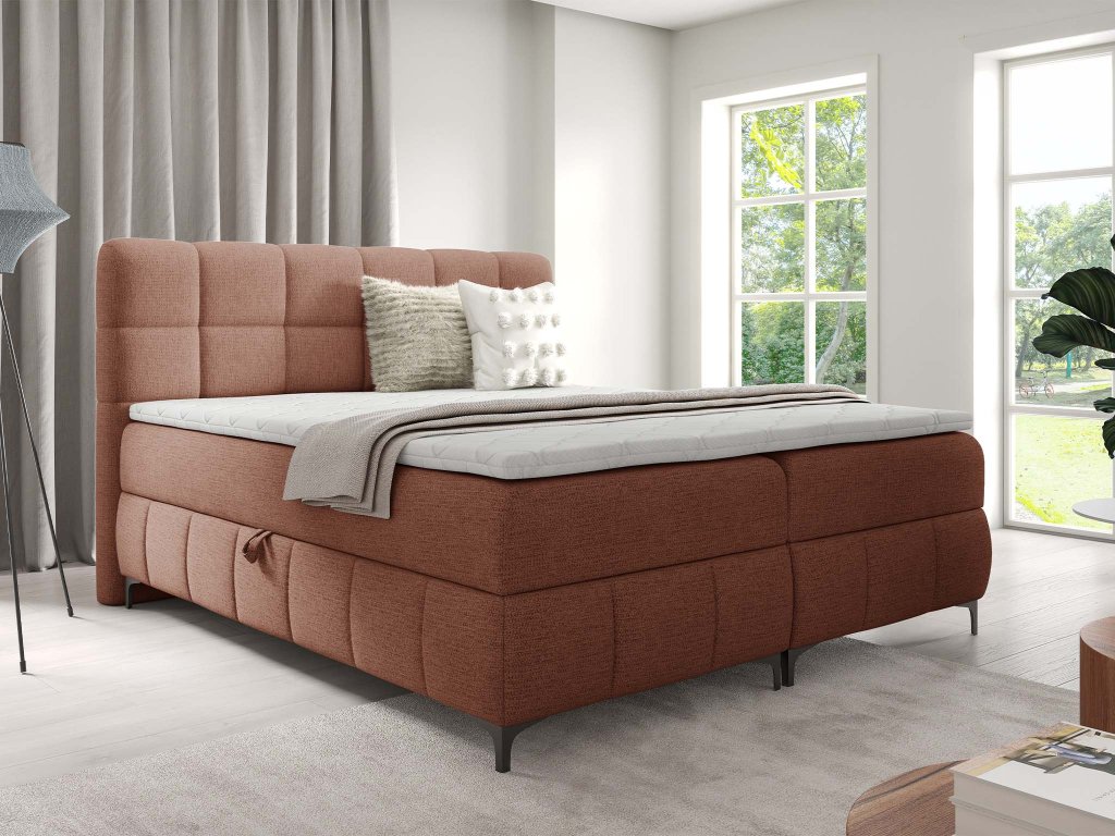 Manželská boxspring posteľ s úložným priestorom Zophie 200x200 - tehlová
