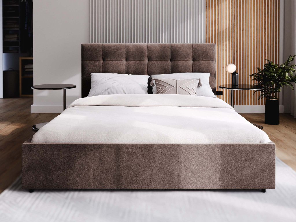 Manželská čalúnená posteľ s úložným priestorom Avela 140x200 - hnedá
