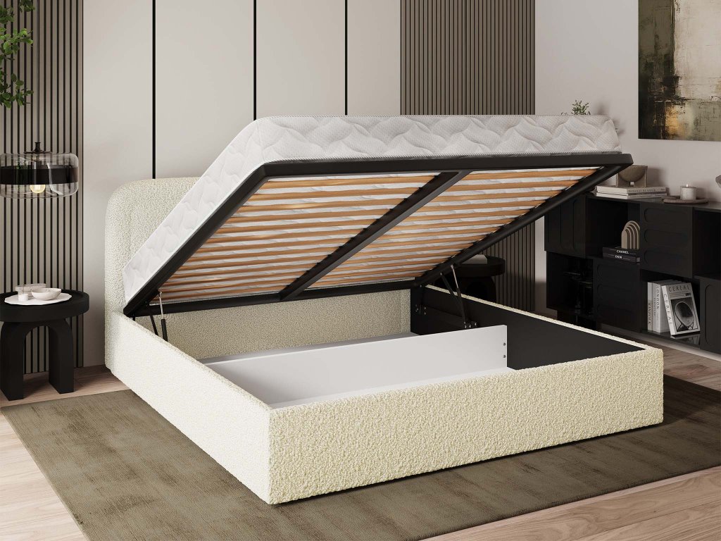 Manželská čalúnená posteľ s úložným priestorom Benira Q 140x200 - smotanová