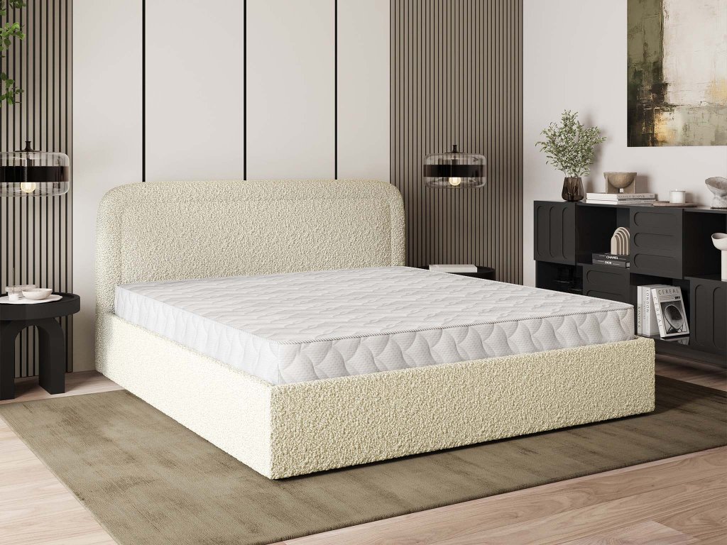 Benira Q v krémovom prevedení pôsobí ľahko, vzdušne a prirodzene zapadne do rôznych štýlov – od moderných minimalistických, až po romanticky ladené spálne. Je ako prázdne plátno, ktoré môžete dotvoriť podľa vlastného vkusu – vďaka jej univerzálnemu charakteru sa stane harmonickou súčasťou vášho domova. K posteli odporúčame doplniť nočný stolík, komodu aj šatníkovú skriňu.