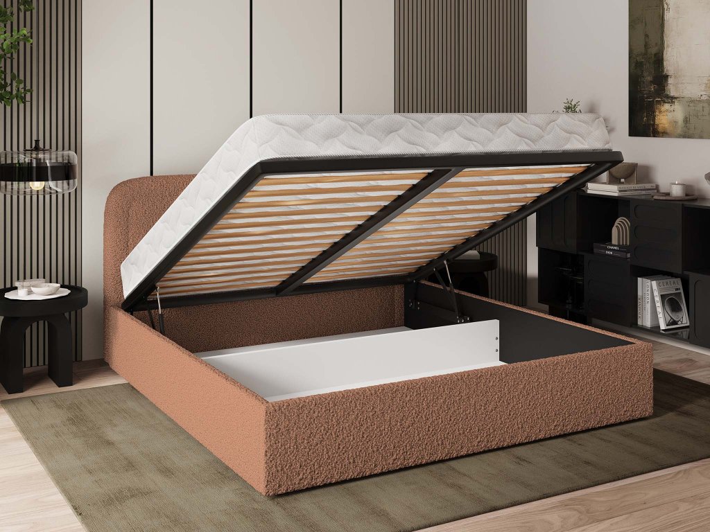 Manželská čalúnená posteľ s úložným priestorom Benira Q 160x200 - tehlová