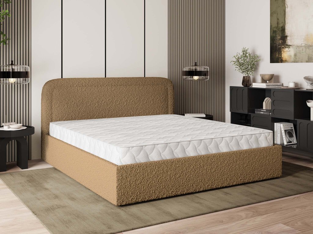 Manželská posteľ Benira Q v rozmere 180x200 cm prichádza v elegantnom odtieni ťavej hnedej a predstavuje harmonické spojenie moderného dizajnu, komfortu a praktickosti. S dôrazom na detail, kvalitné čalúnenie a vizuálne čisté línie sa stáva dominantným a zároveň vkusným prvkom každej modernej spálne.