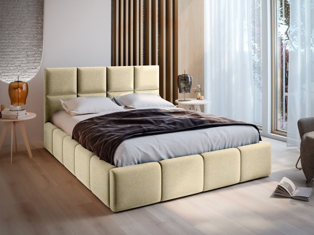 Manželská čalúnená posteľ s úložným priestorom Comone 180x200 - krémová