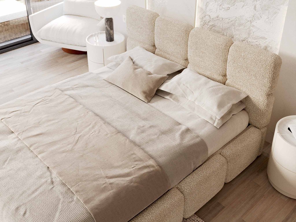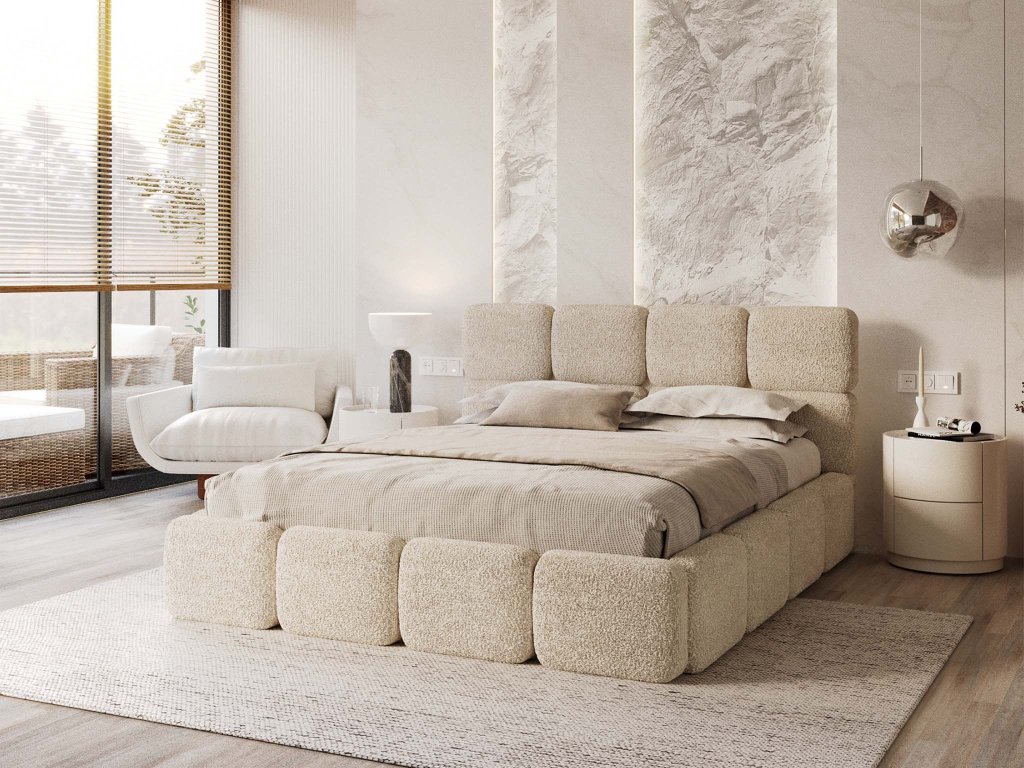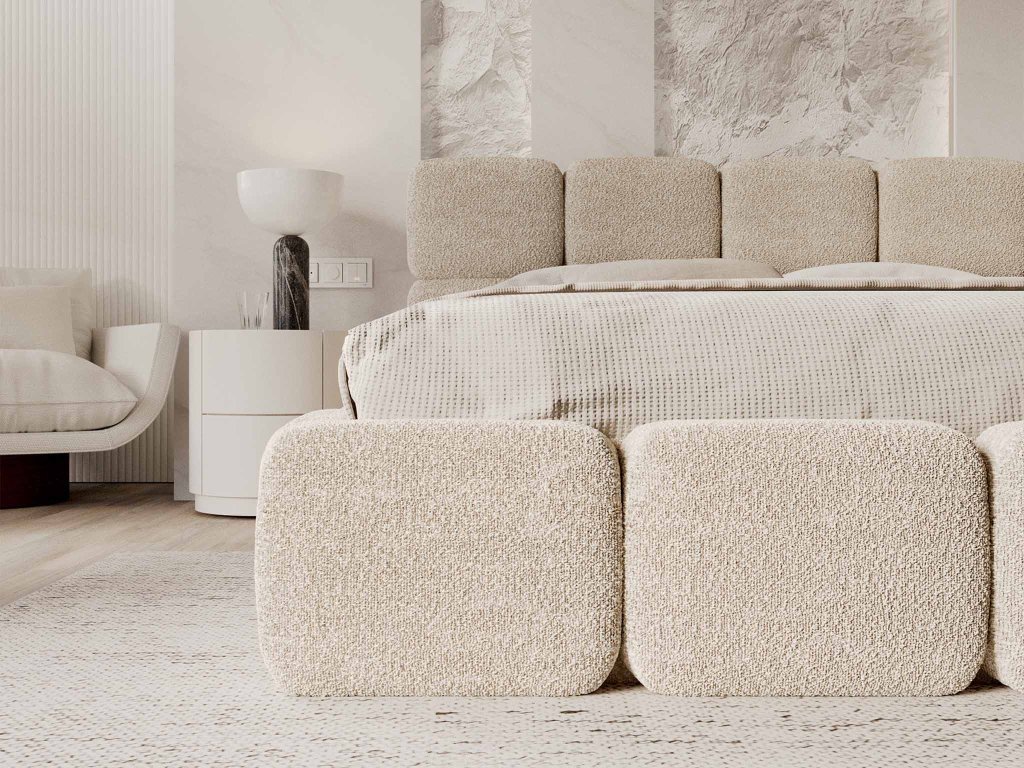 Čalúnená posteľ Delicato 160x200 v krémovom odtieni je stvorená pre tých, ktorí túžia po spojení komfortu a dizajnovej čistoty. Už na prvý pohľad očarí svojou jemnou eleganciou a nadčasovým vzhľadom, ktorý vnesie do vašej spálne pocit pokoja a luxusu. Látka BOUCLE, ktorou je posteľ čalúnená, je synonymom štýlu a príjemného dotyku. Jej mäkký povrch a decentná štruktúra vytvárajú atmosféru domova, v ktorom sa budete cítiť naozaj výnimočne. Delicato nie je len obyčajná posteľ – je to dizajnový prvok a miesto oddychu v jednom. Svojím vzhľadom a pohodlím si získa vaše srdce aj telo Dominantné vertikálne prešívané čelo postele pôsobí nielen esteticky, ale poskytuje aj príjemnú oporu pri večernom relaxe s knihou alebo šálkou čaju. Delicato do spálne nie je len posteľ – je to útočisko pokoja, ktoré premení vašu spálňu na priestor plný pohody, štýlu a komfortu. Ideálna voľba pre tých, ktorí hľadajú spojenie funkčnosti a dizajnovosti.